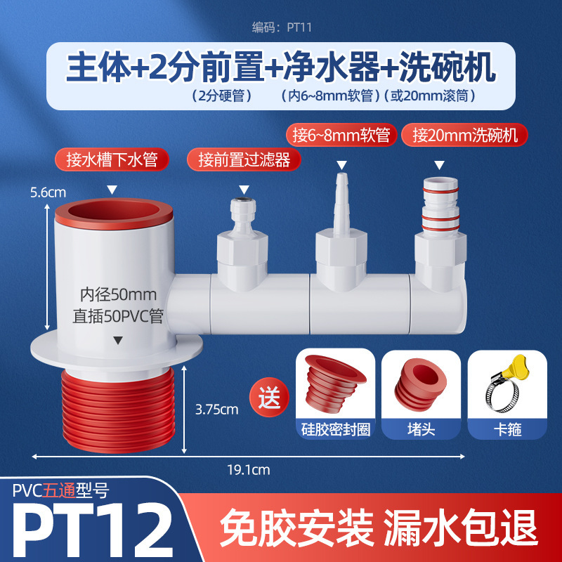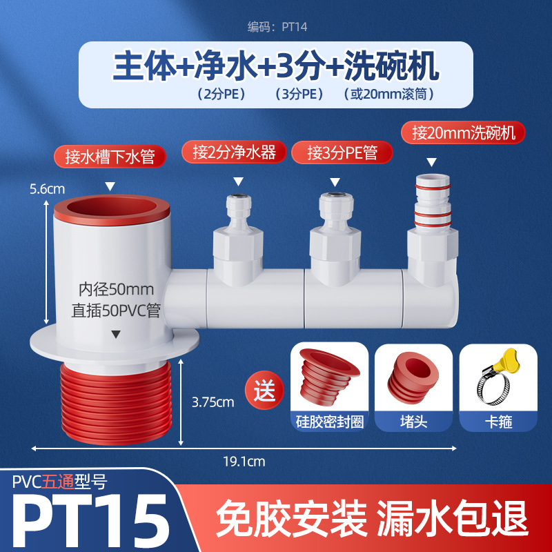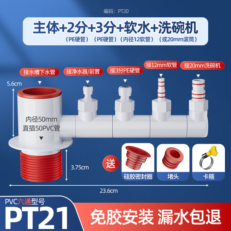 • [초두께 탈취제] 5 방향 본체 + 6mm 탑 + 20mm 식기세척기 + 2 포인트 정수기 커넥터
