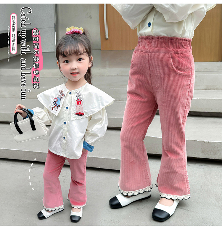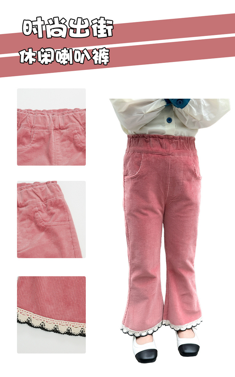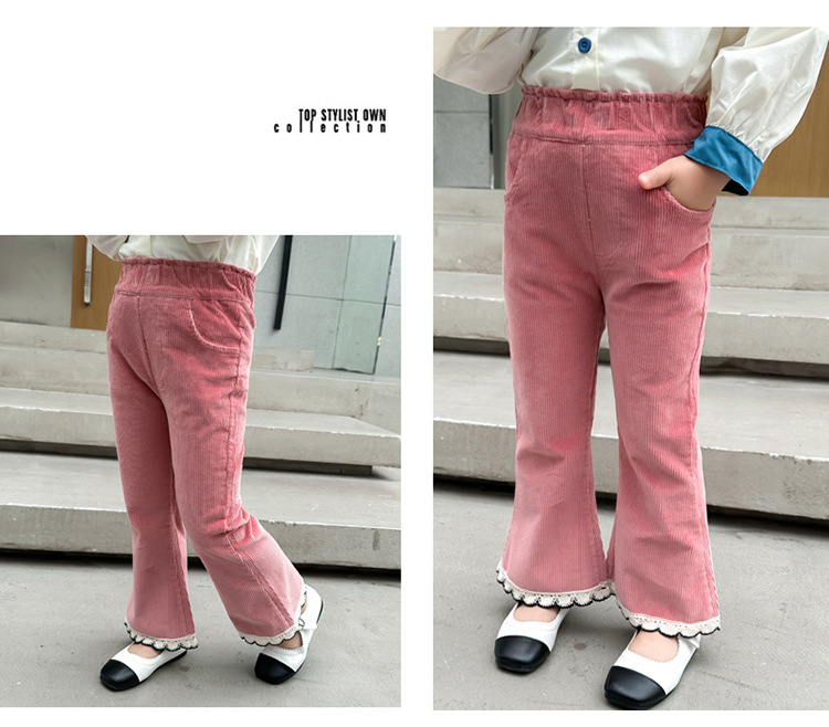 여아 심지 바지 봄과 가을 새로운 어린이 플레어 팬츠 웨스턴 레이스 스트레치 아기 소녀 캐주얼 바지 도매