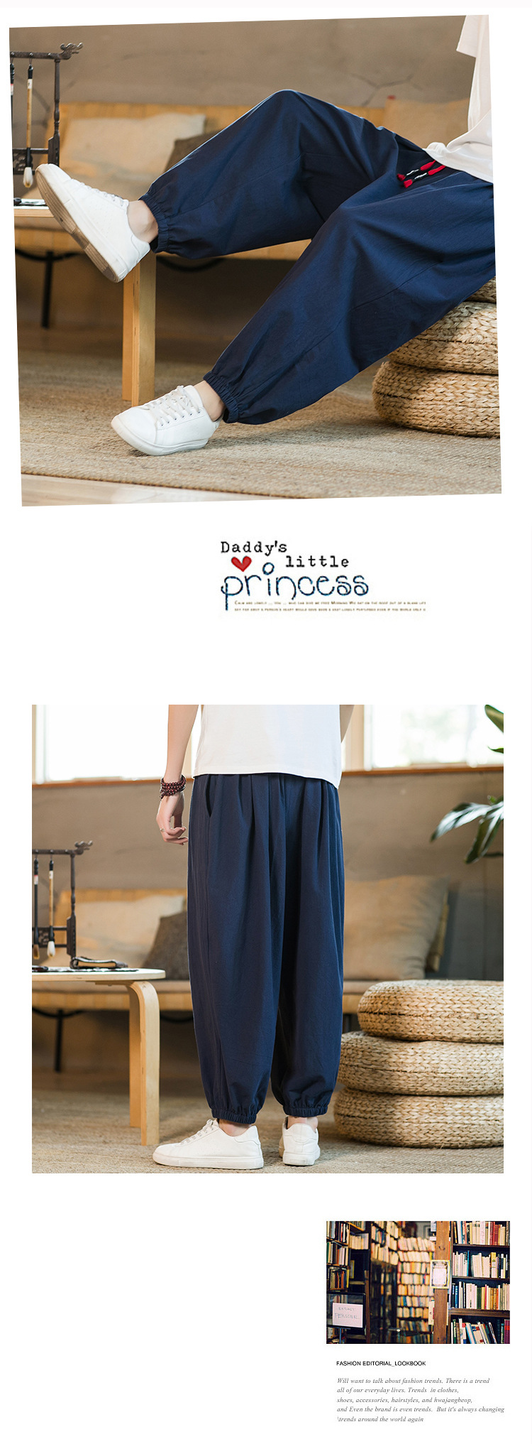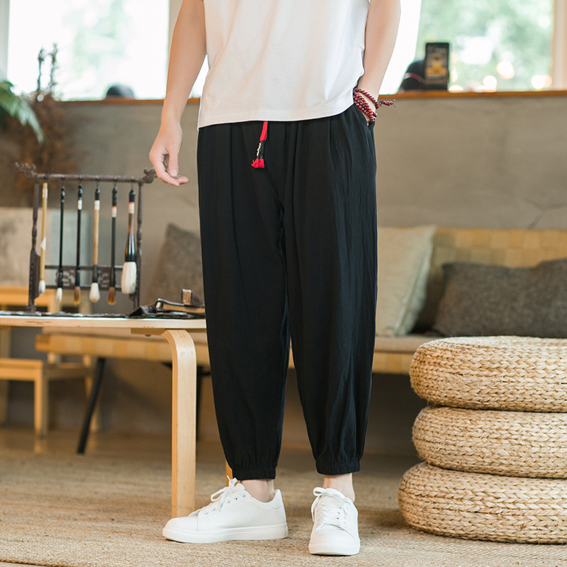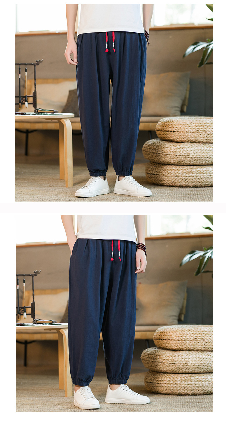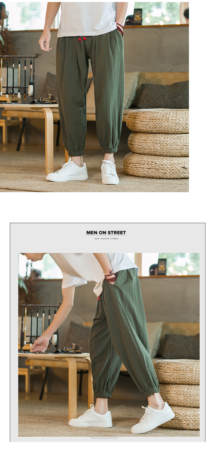 2023 여름 새로운 일본 플러스 사이즈 남자의 면 린넨 발목 바지 단색 느슨한 린넨 캐주얼 바지 남자의 발목 길이 바지