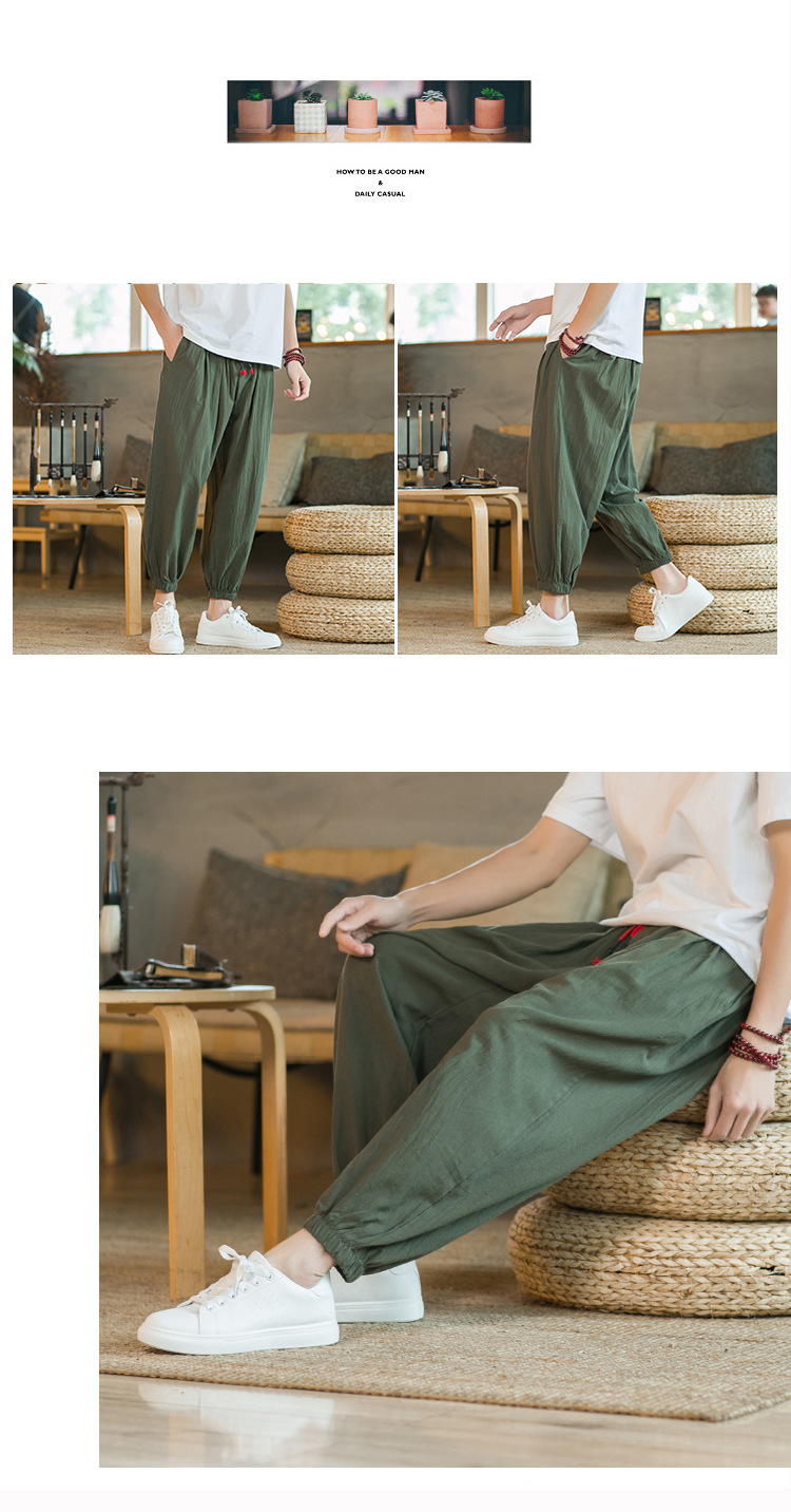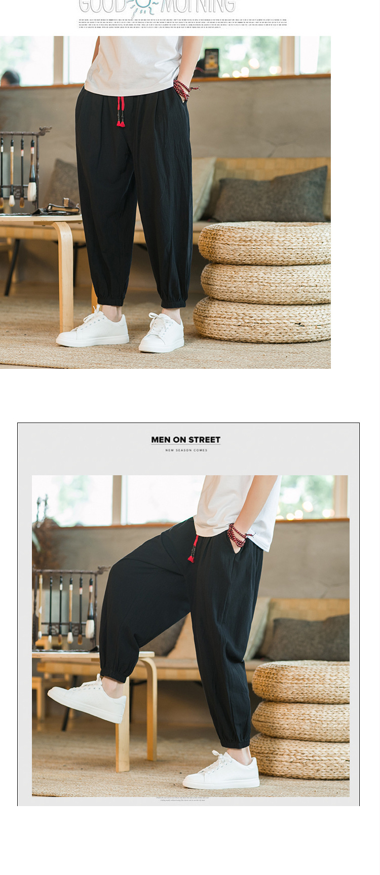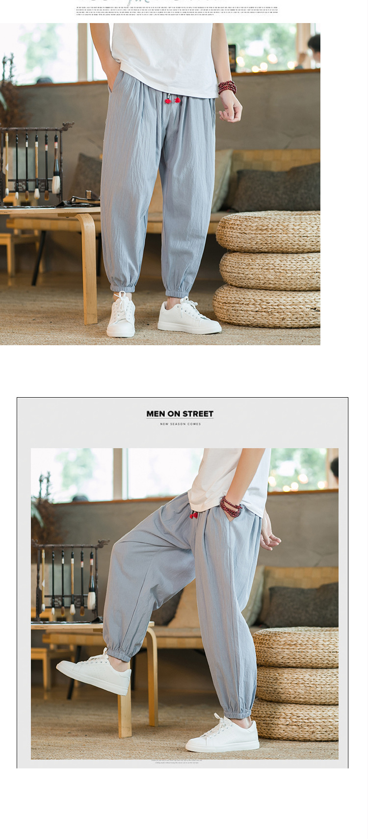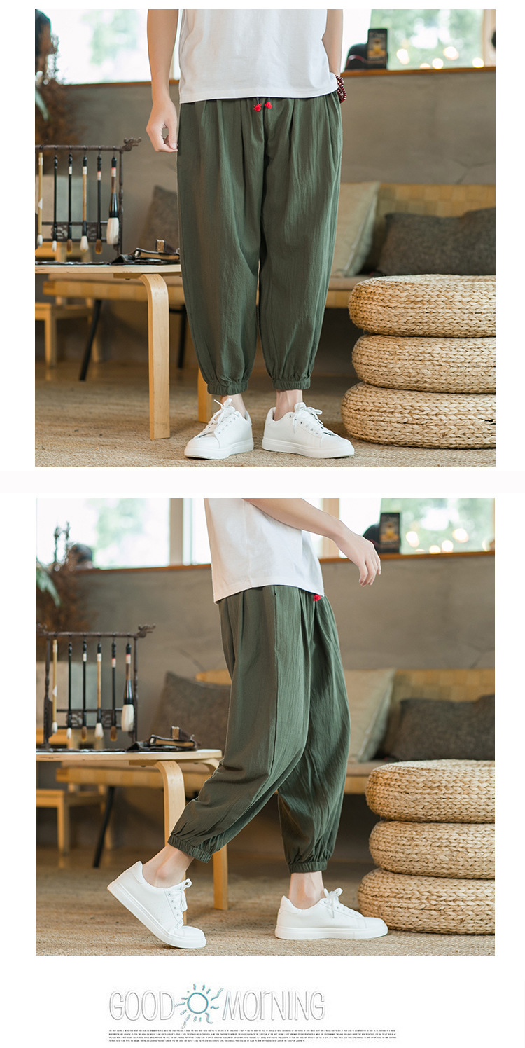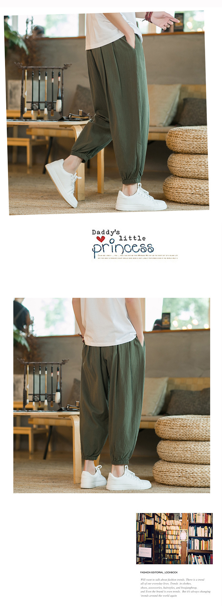 2023 여름 새로운 일본 플러스 사이즈 남자의 면 린넨 발목 바지 단색 느슨한 린넨 캐주얼 바지 남자의 발목 길이 바지스토어 가기
