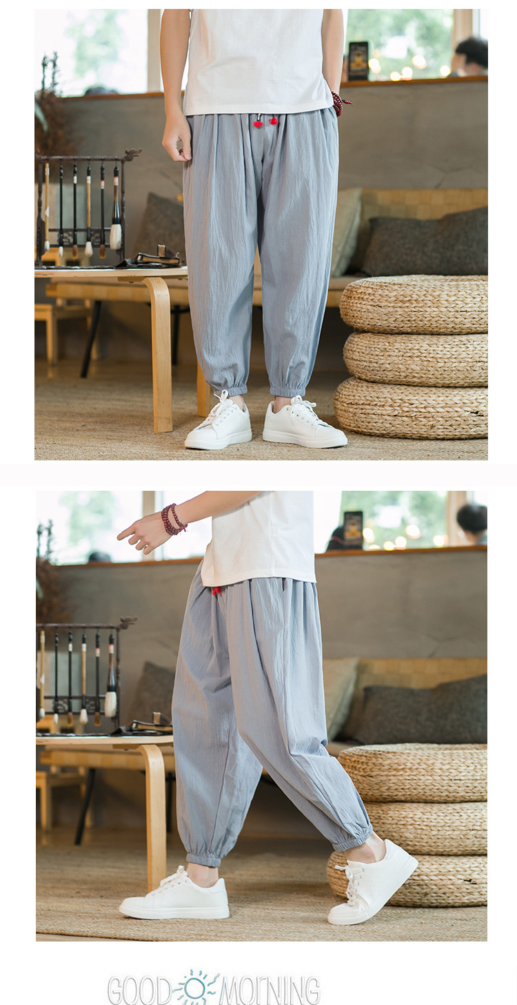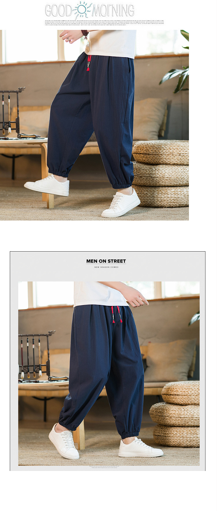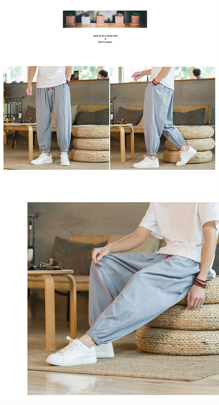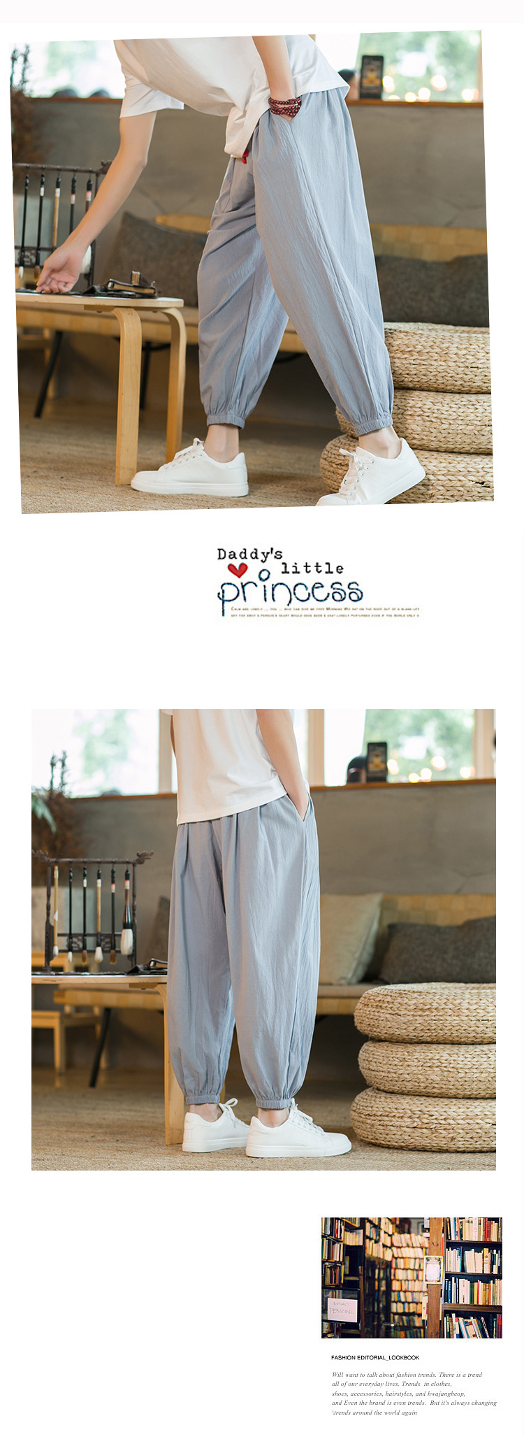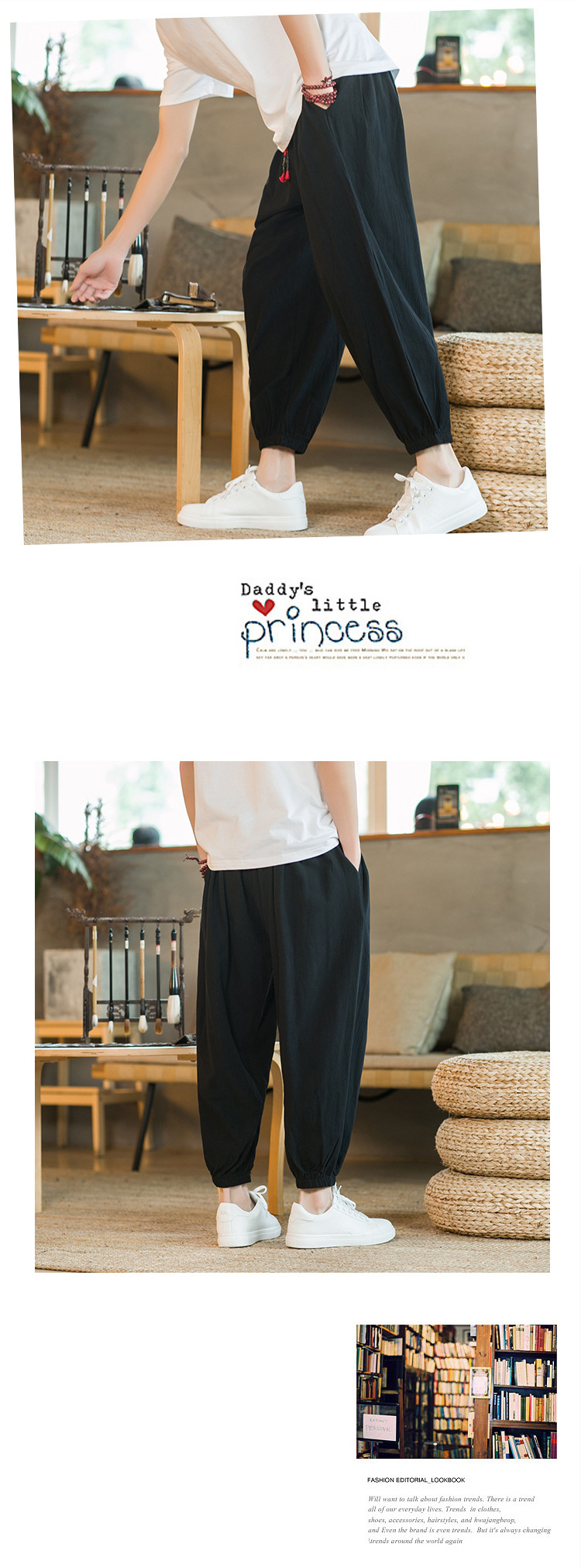 2023 여름 새로운 일본 플러스 사이즈 남자의 면 린넨 발목 바지 단색 느슨한 린넨 캐주얼 바지 남자의 발목 길이 바지스토어 가기