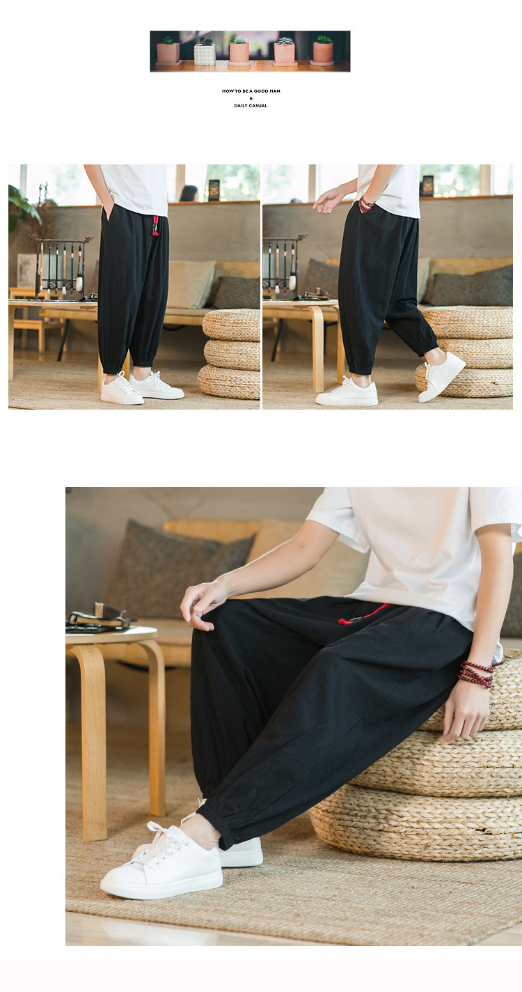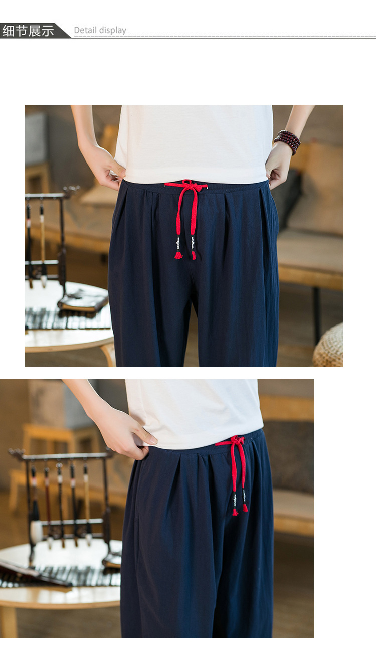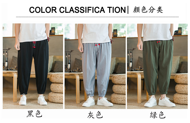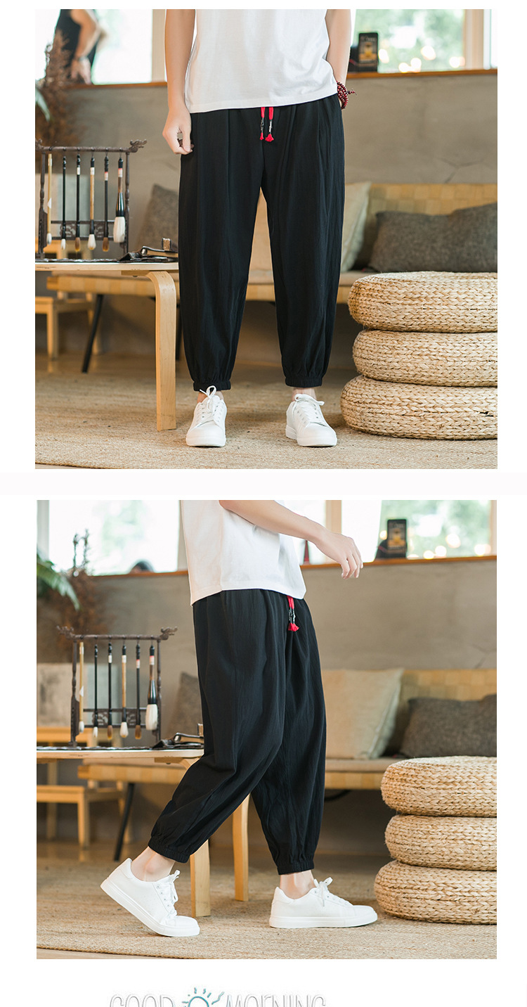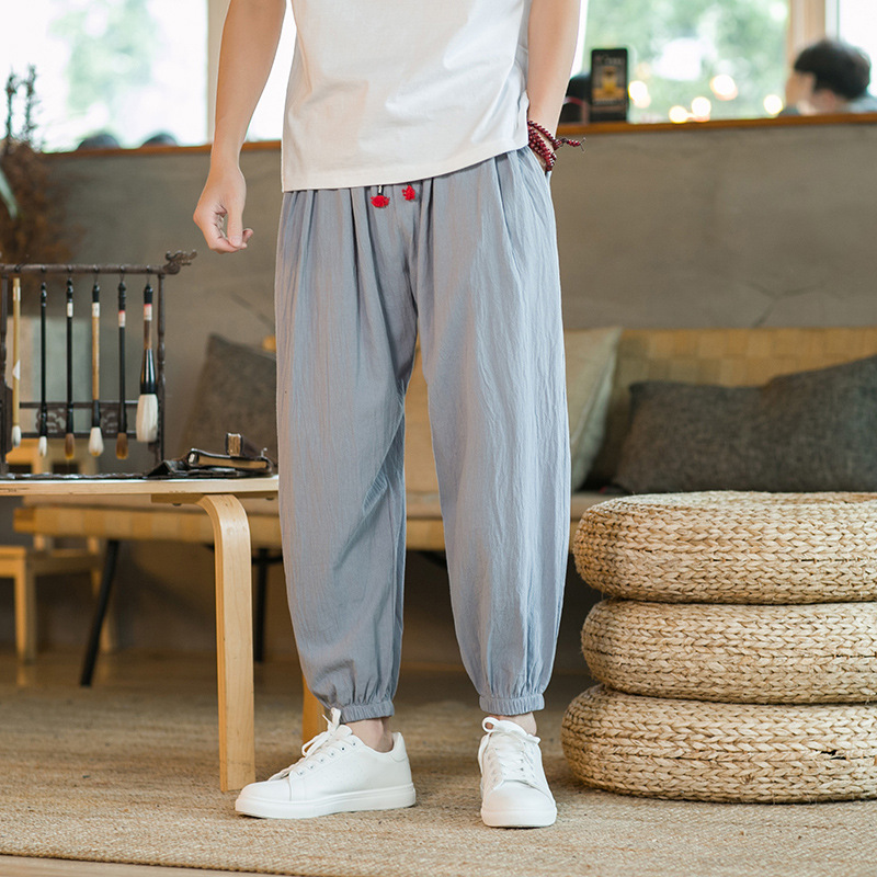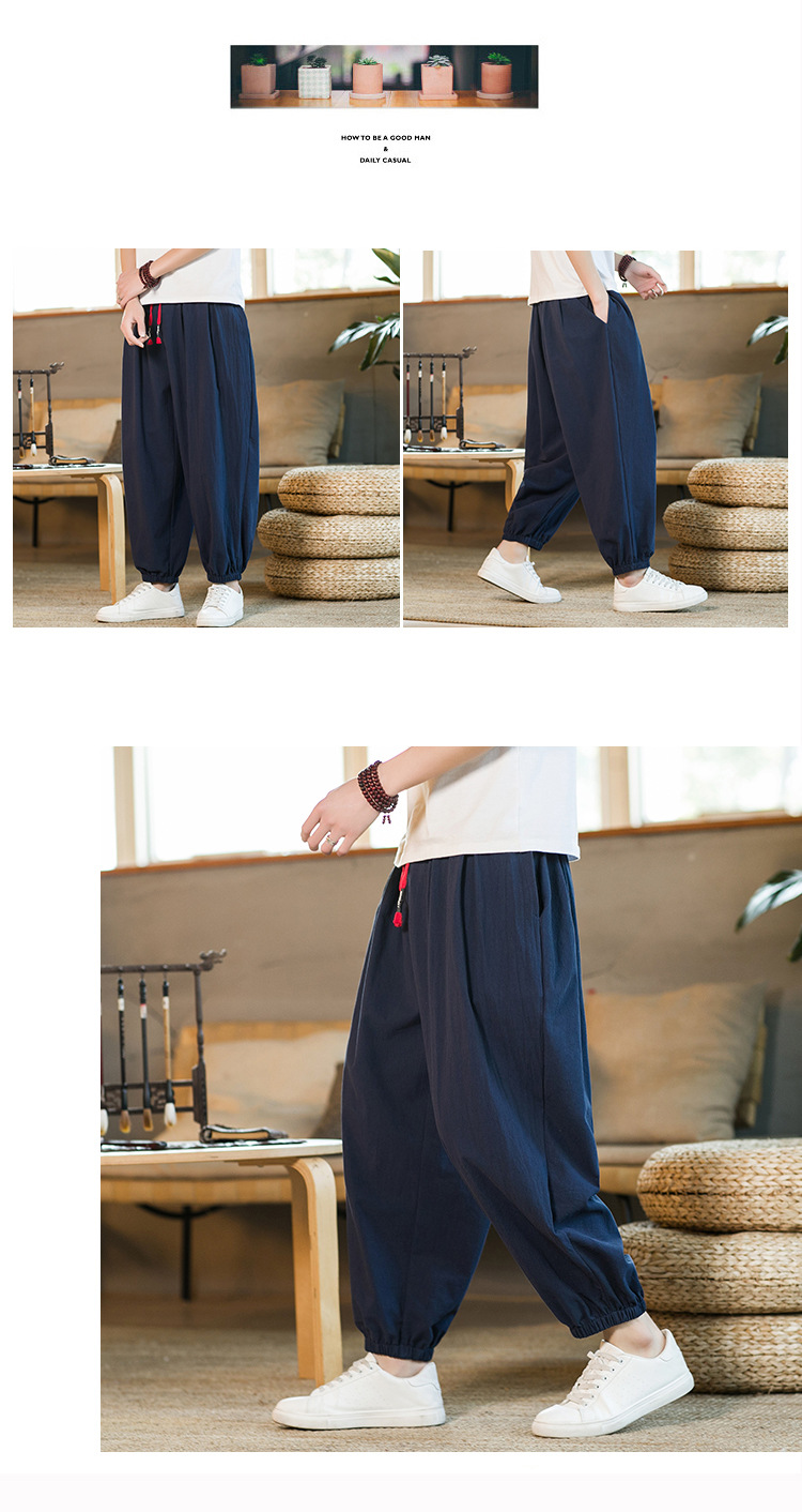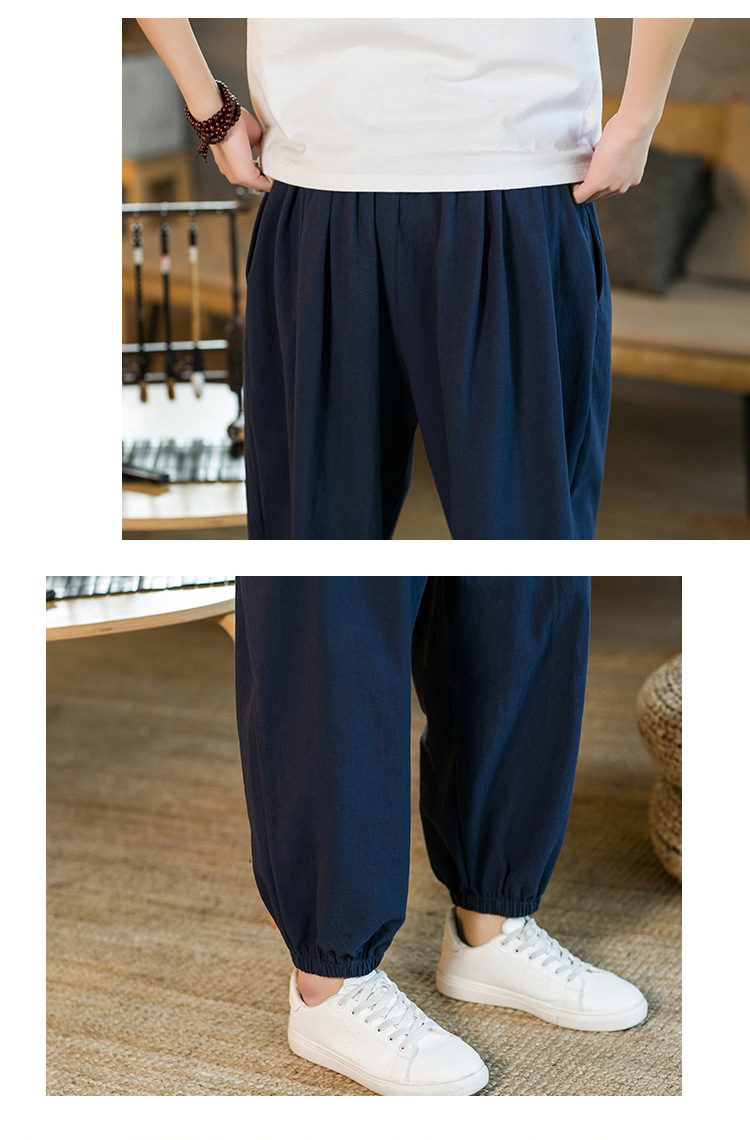 2023 여름 새로운 일본 플러스 사이즈 남자의 면 린넨 발목 바지 단색 느슨한 린넨 캐주얼 바지 남자의 발목 길이 바지스토어 가기