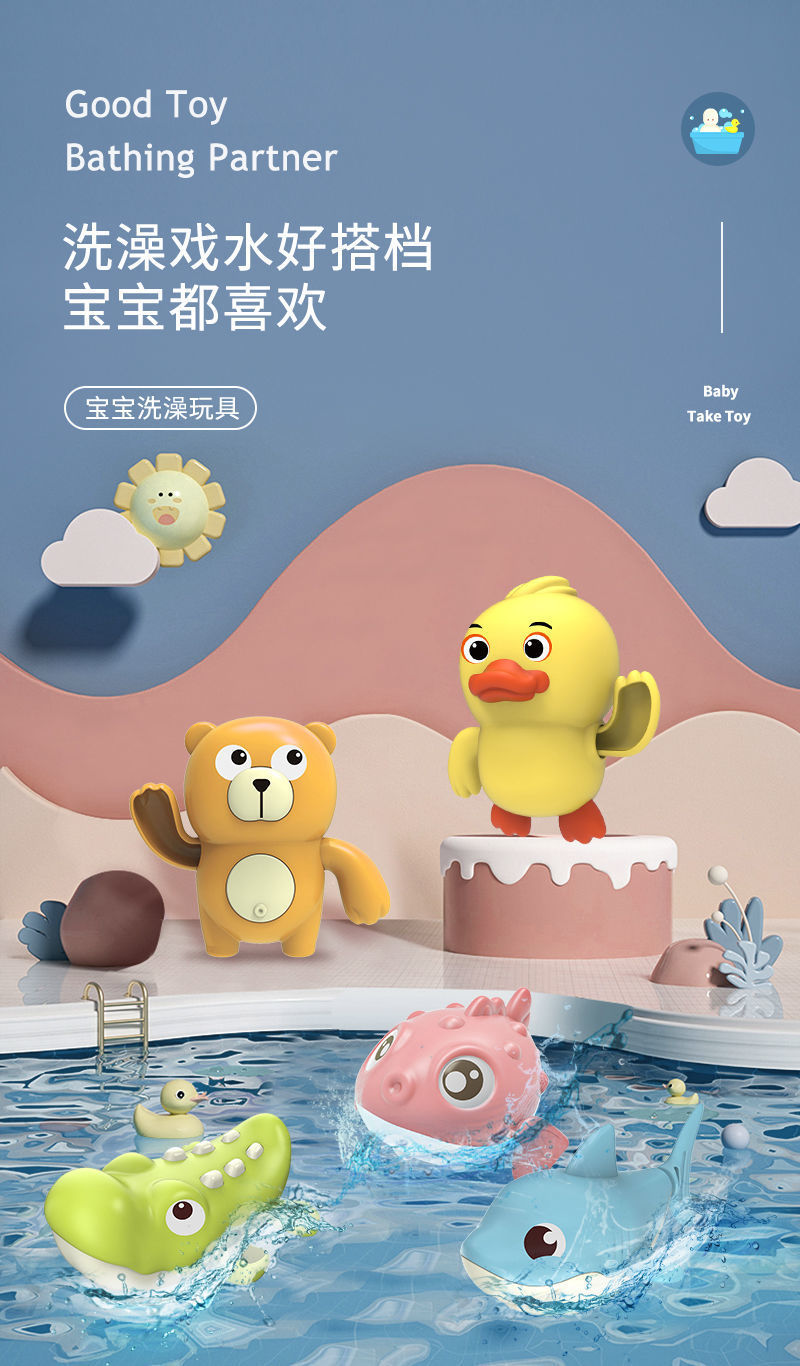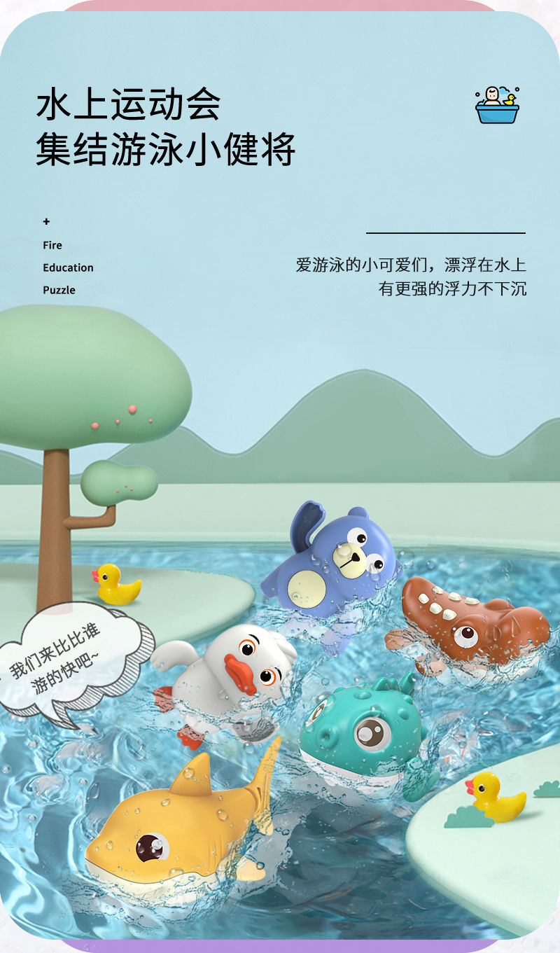 사이버 축하 목욕 코일 물 놀이 장난감 체인 오리 상어 어린이 유아 쉐이크 톤 거북이 목욕 장난감스토어 가기