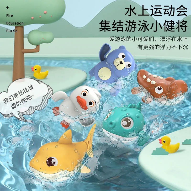 사이버 축하 목욕 코일 물 놀이 장난감 체인 오리 상어 어린이 유아 쉐이크 톤 거북이 목욕 장난감