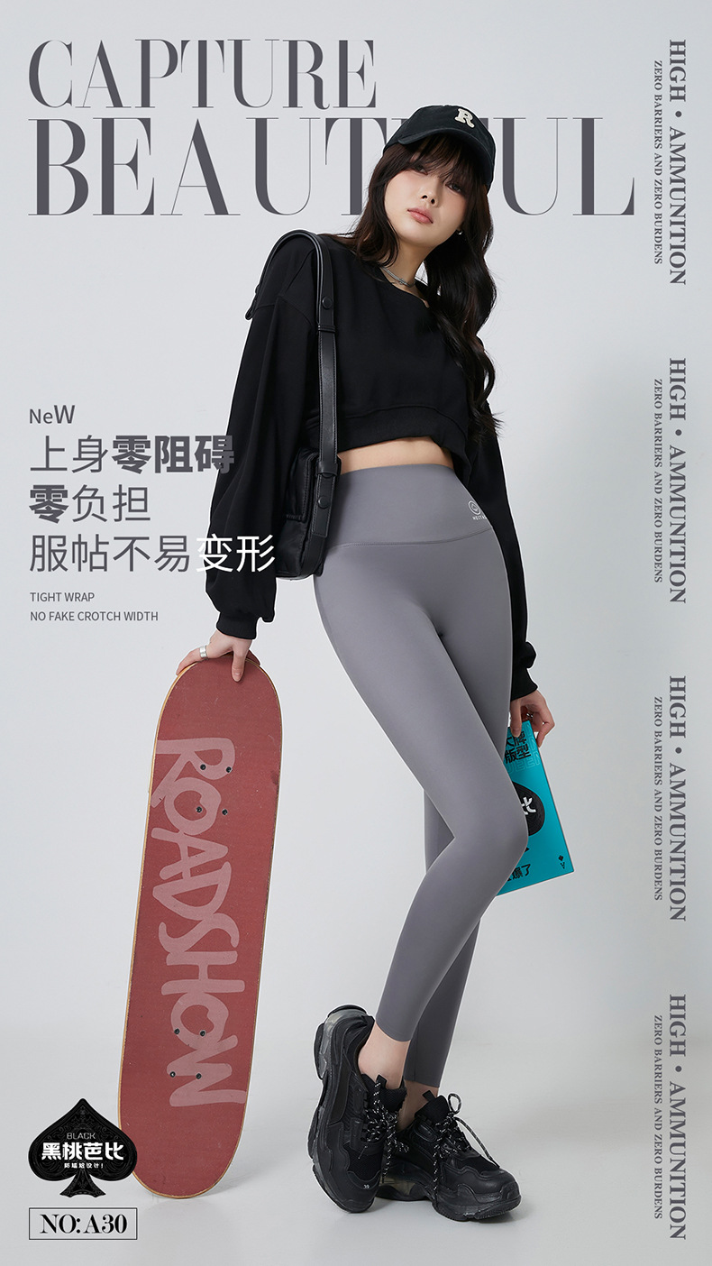 봄과 가을 A30 새로운 검은 복숭아 바비 상어 바지 여성 야외 요가 상어 바지 레깅스 자른 겉옷 스키니 다리