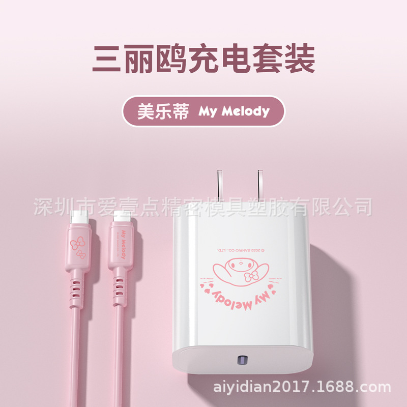 산리오 브랜드 공동 고속 충전 세트 kulomi PD 데이터 라인 만화 매칭 충전 플러그 도매