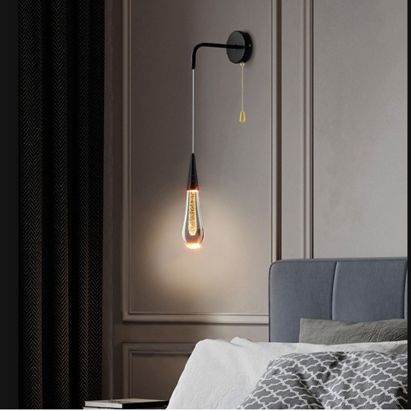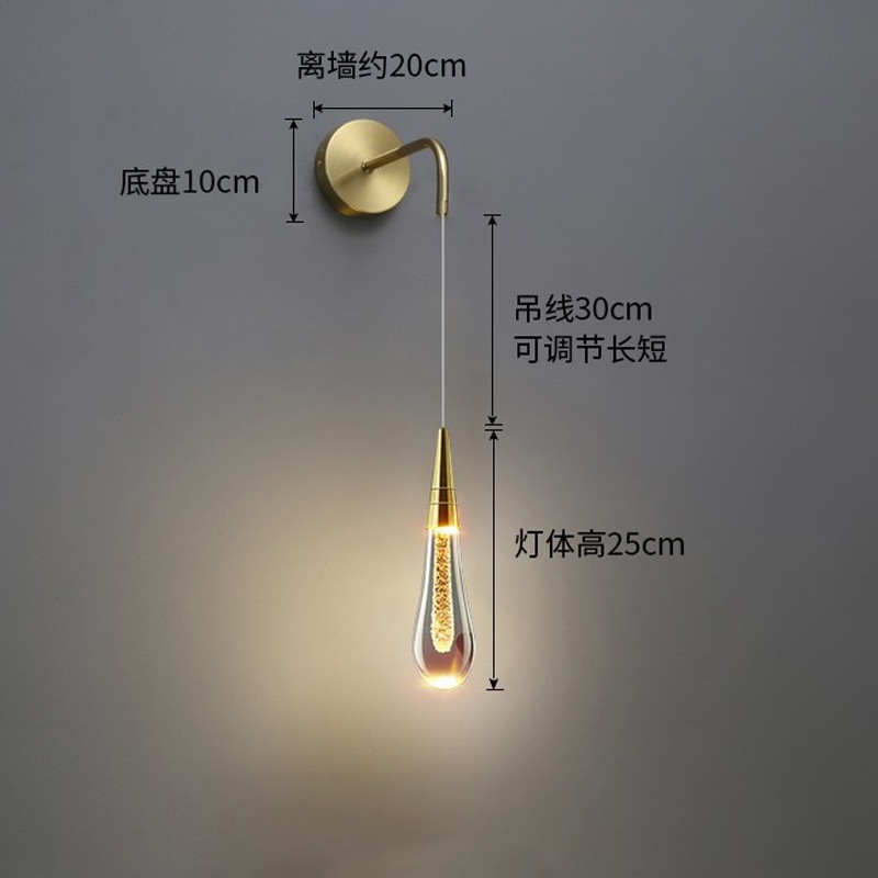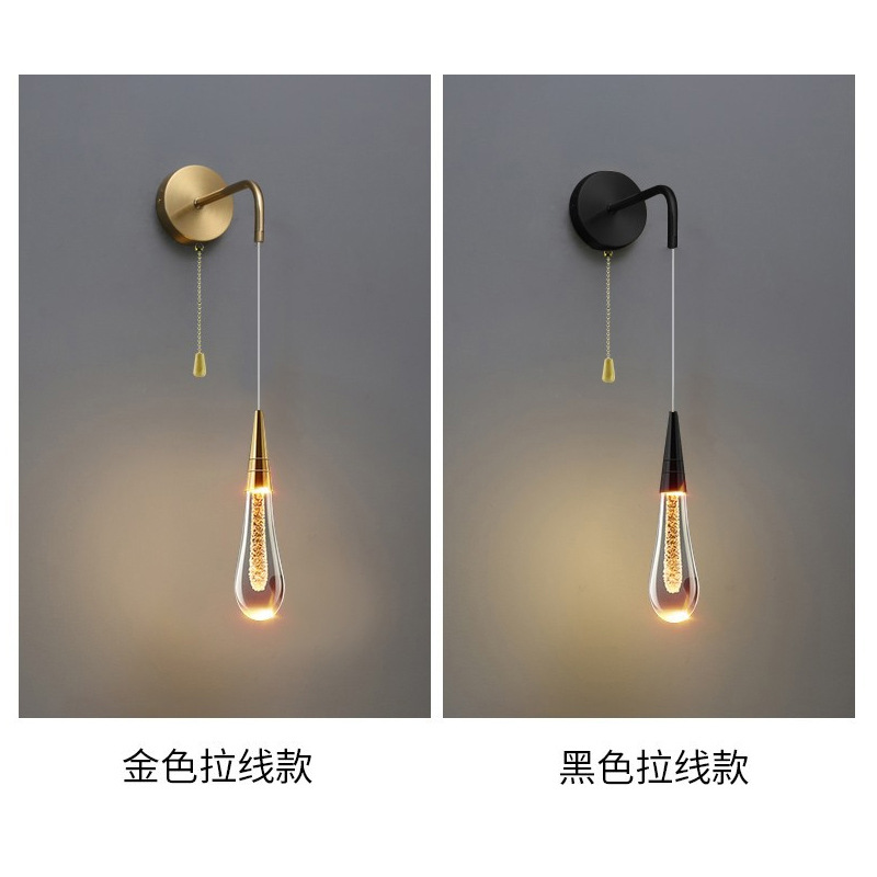 빛 럭셔리 크리스탈 물방울 벽 램프 침대 옆 침실 창조적 인 거실 TV 배경 벽 계단 복도 통로 램프 벽 램프