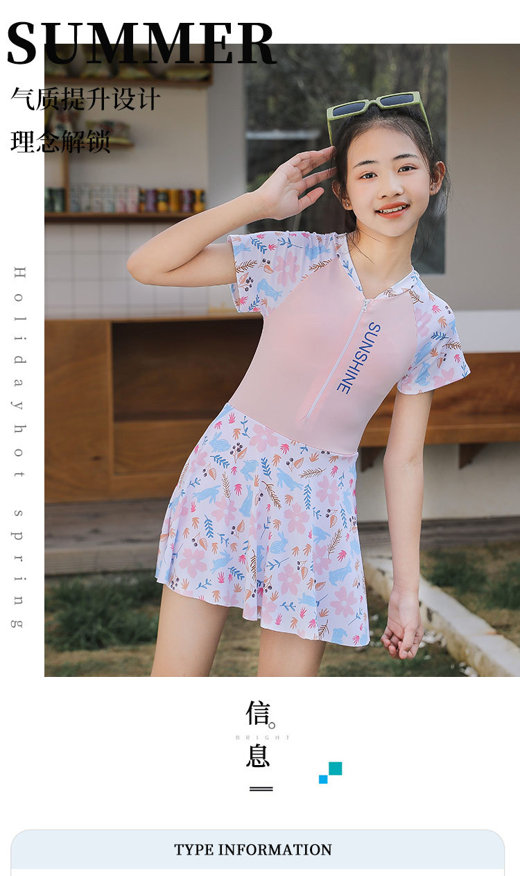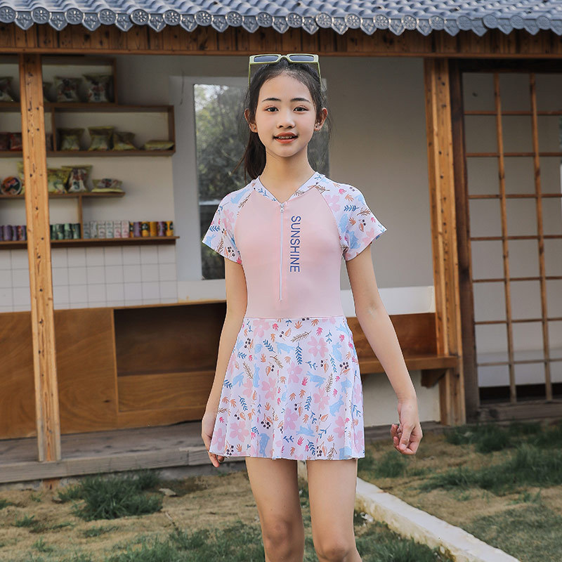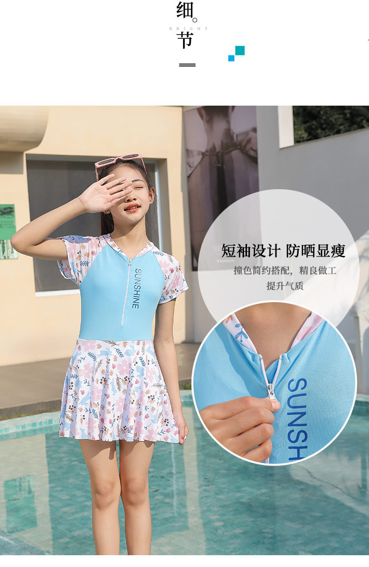 어린이 수영복 여아 지퍼 수영복 반팔 귀여운 여아 심플 스포츠 수영복