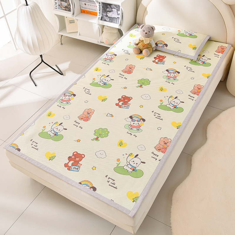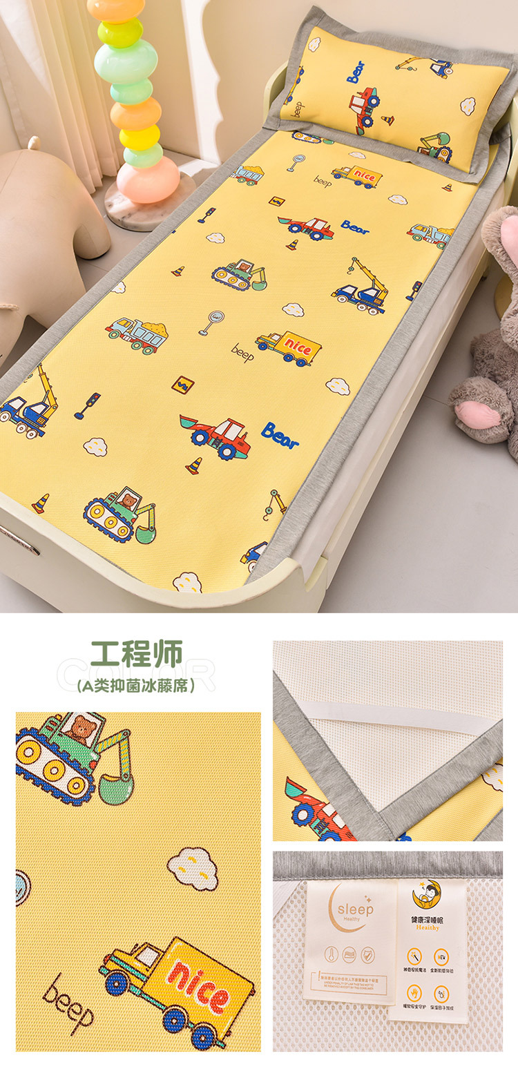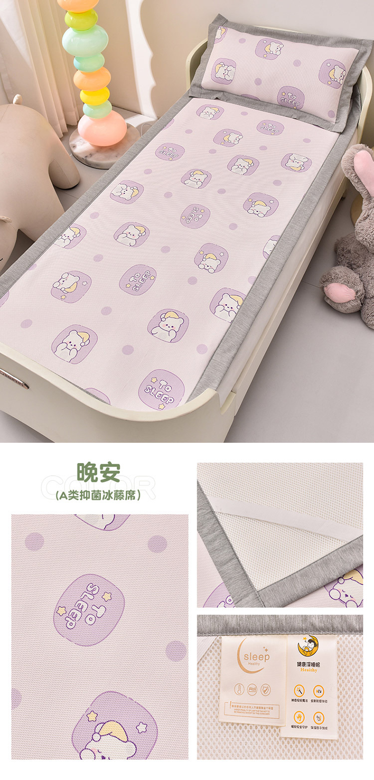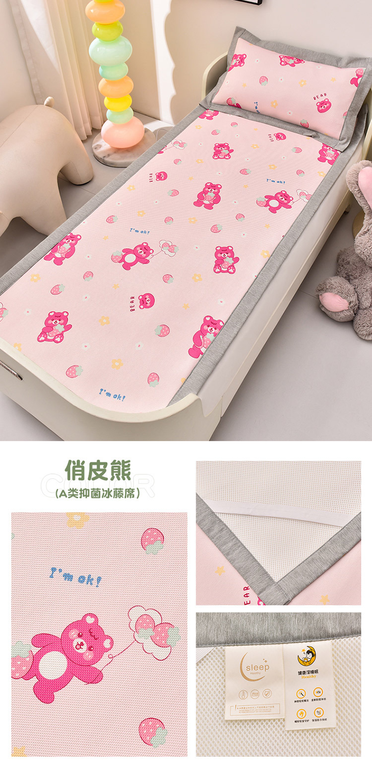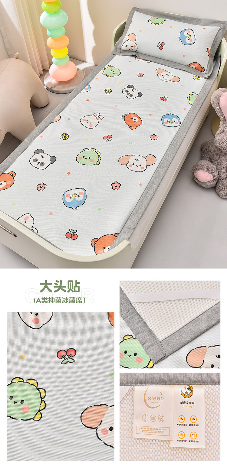 클래스 A 항균 어린이 만화 아이스 등나무 매트 투피스 세트 유치원 낮잠 통기성 아이스 실크 여름 매트 빨 수있는 부드러운 매트스토어 가기