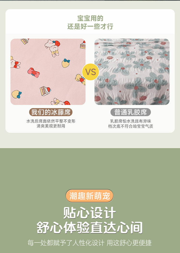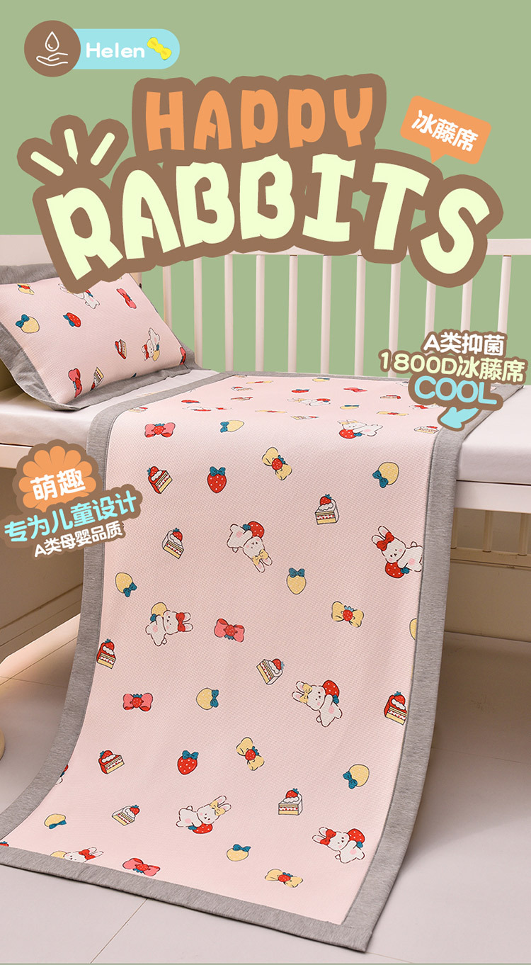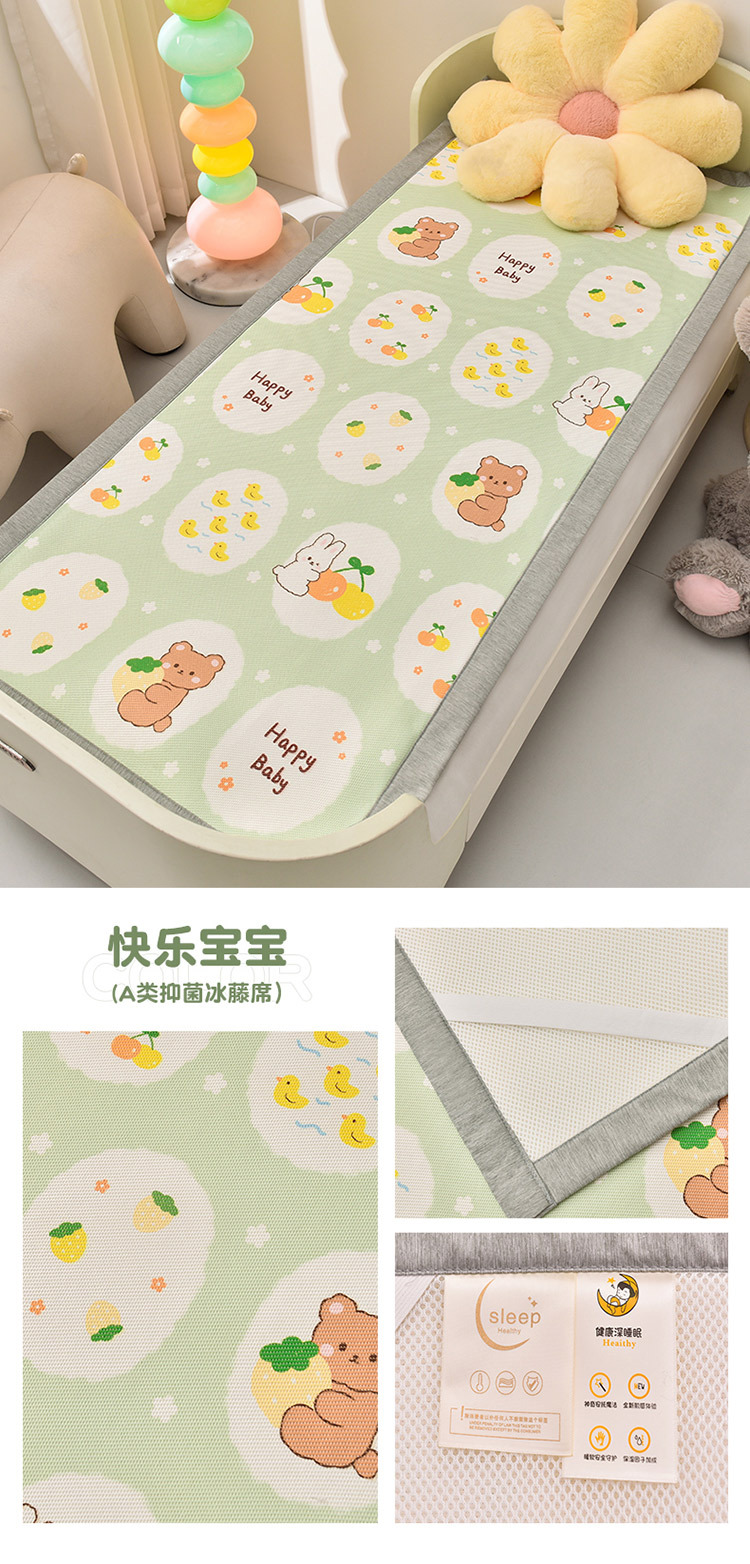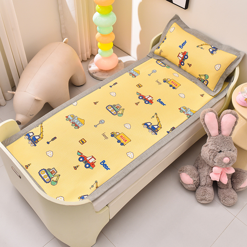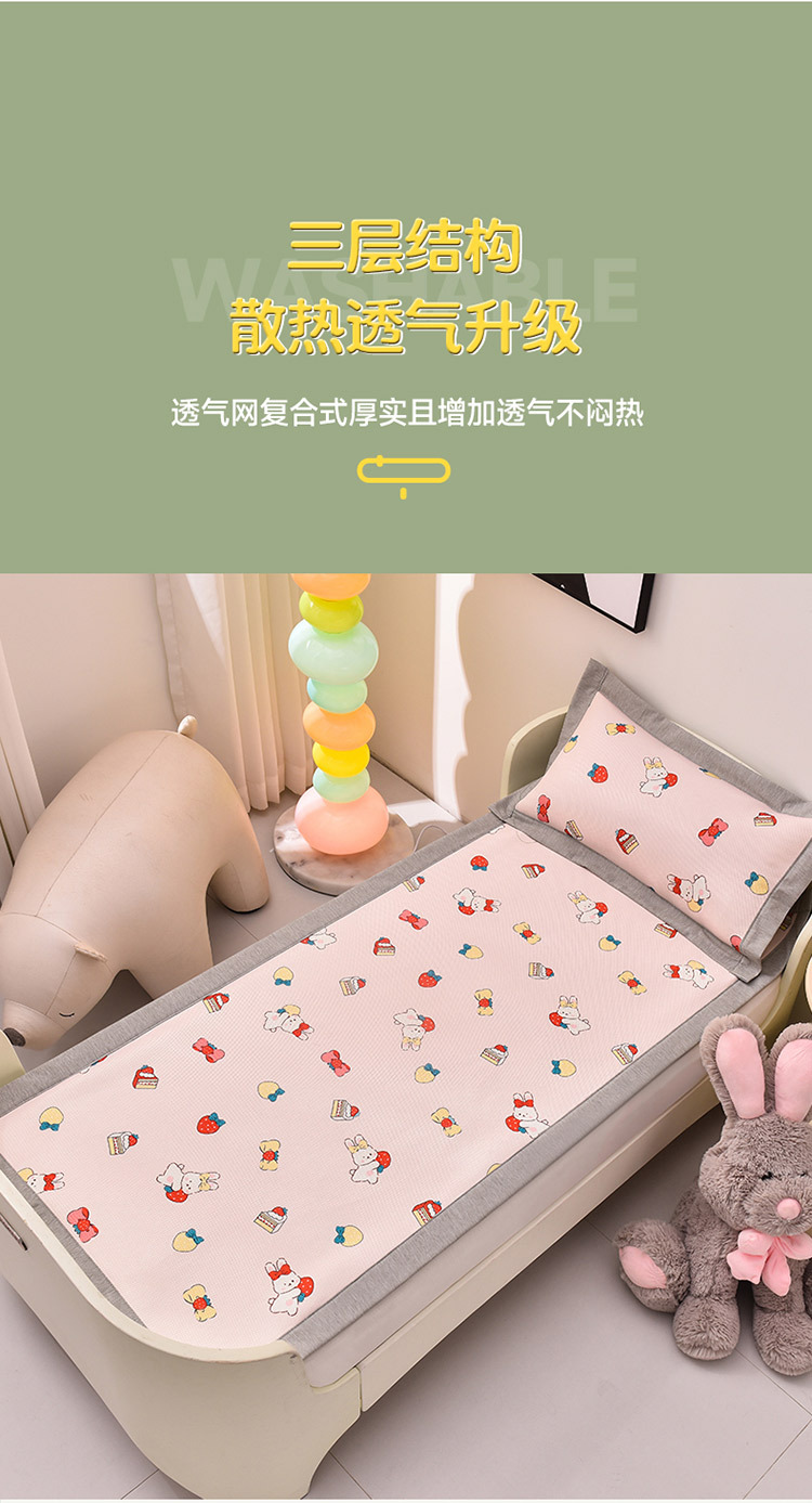 클래스 A 항균 어린이 만화 아이스 등나무 매트 투피스 세트 유치원 낮잠 통기성 아이스 실크 여름 매트 빨 수있는 부드러운 매트스토어 가기