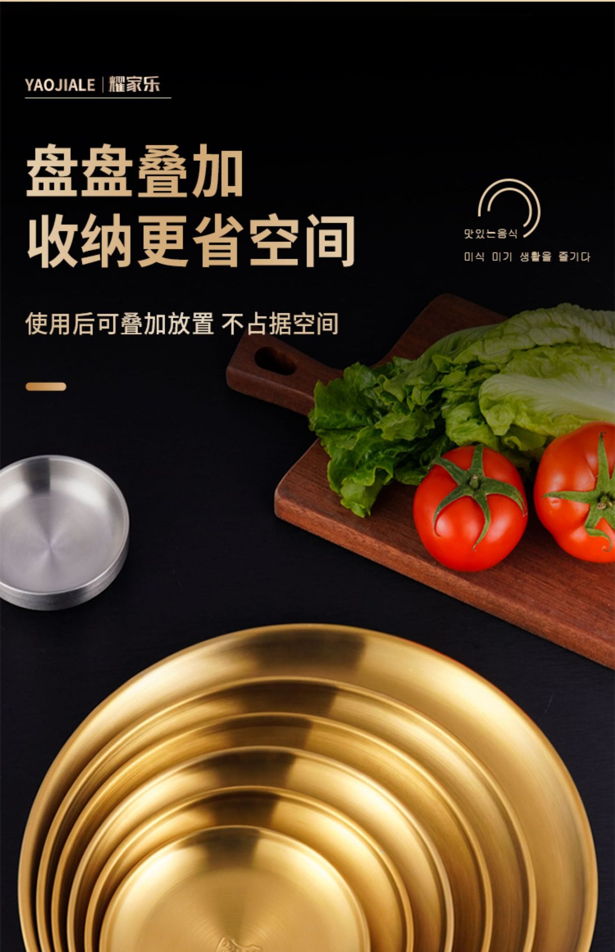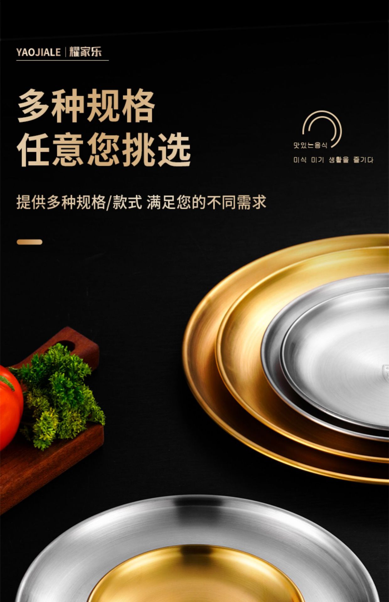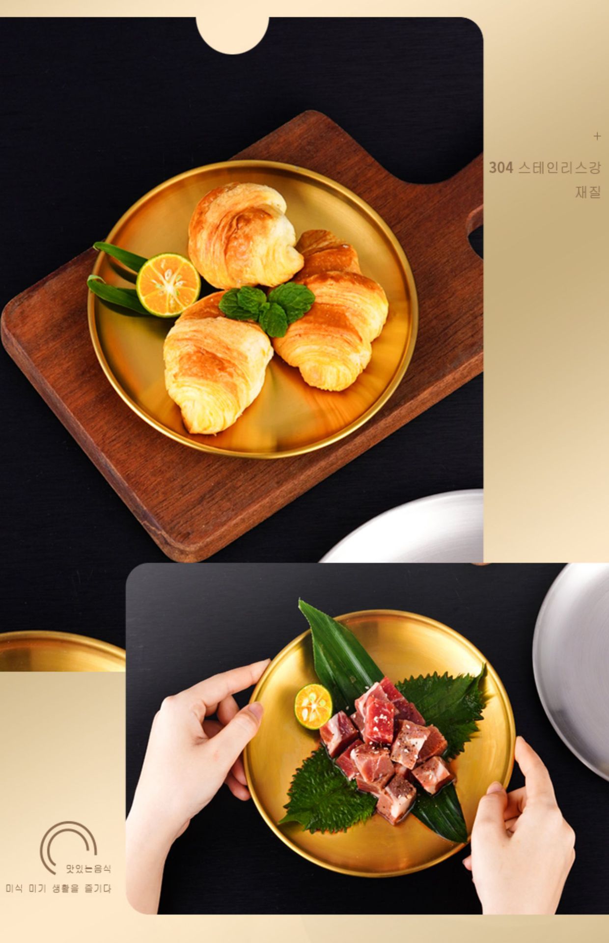 304 스테인리스 접시 한식 바베큐 접시 가정용 금색 원형 접시 트레이 스테이크 서양식 접시 뼈 접시 얕은 접시스토어 가기