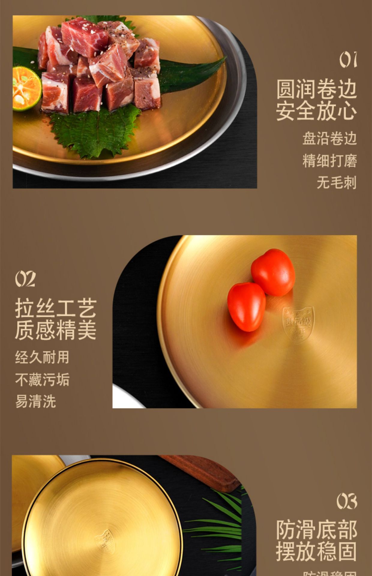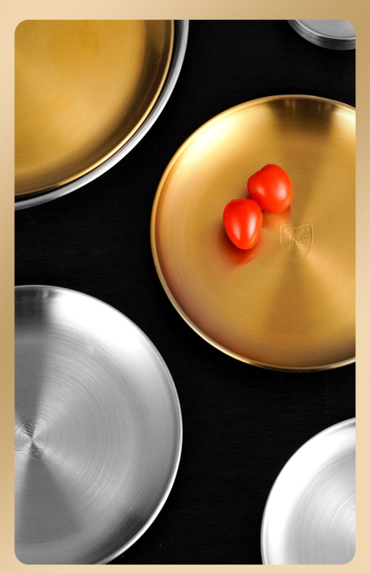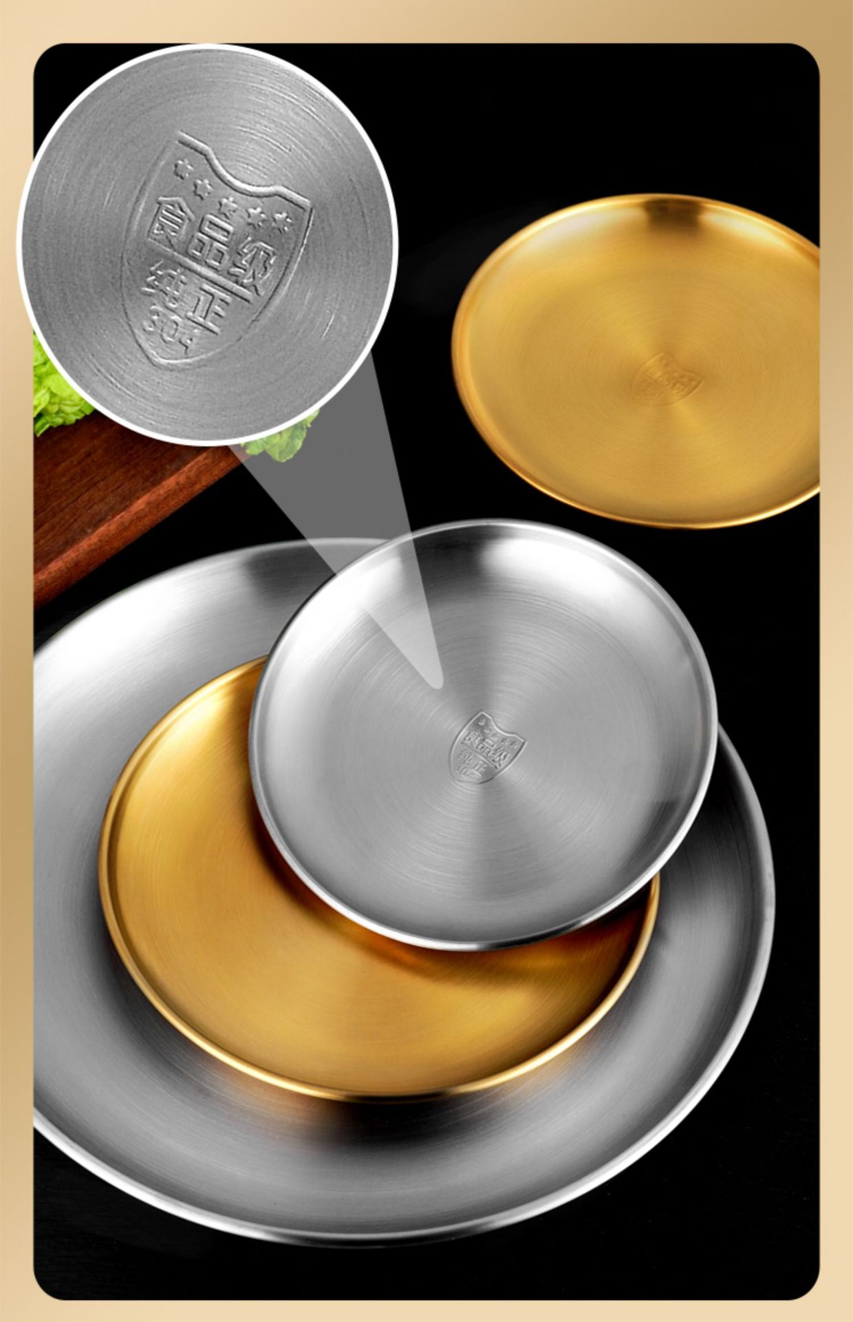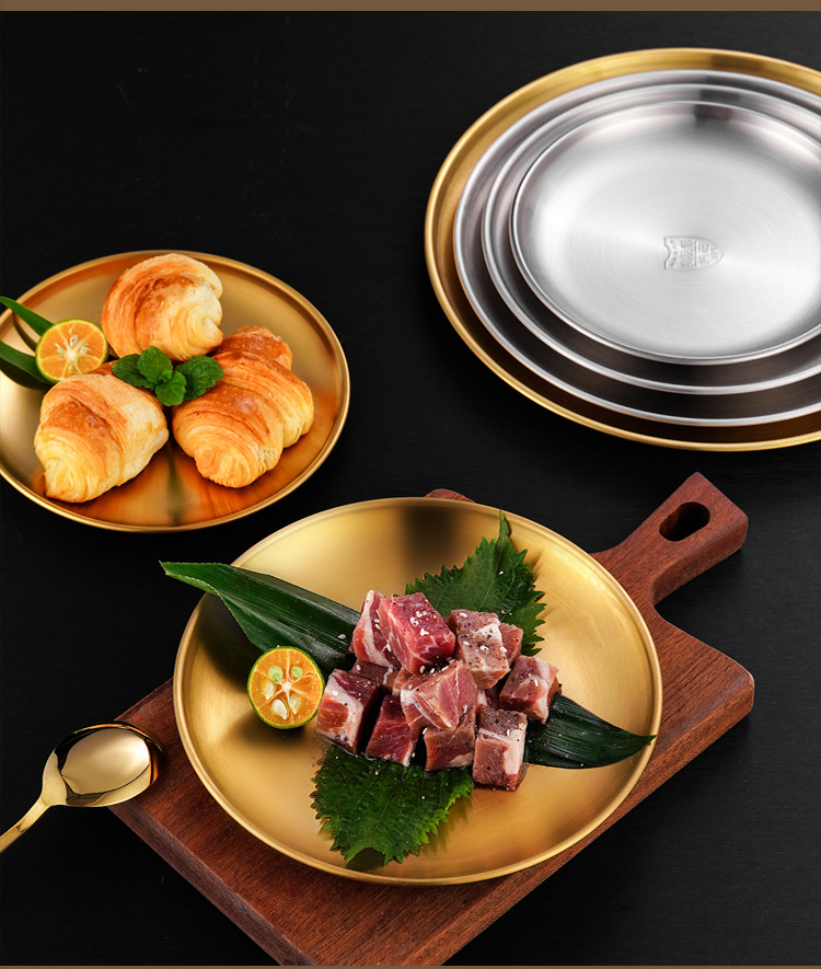 304 스테인리스 접시 한식 바베큐 접시 가정용 금색 원형 접시 트레이 스테이크 서양식 접시 뼈 접시 얕은 접시