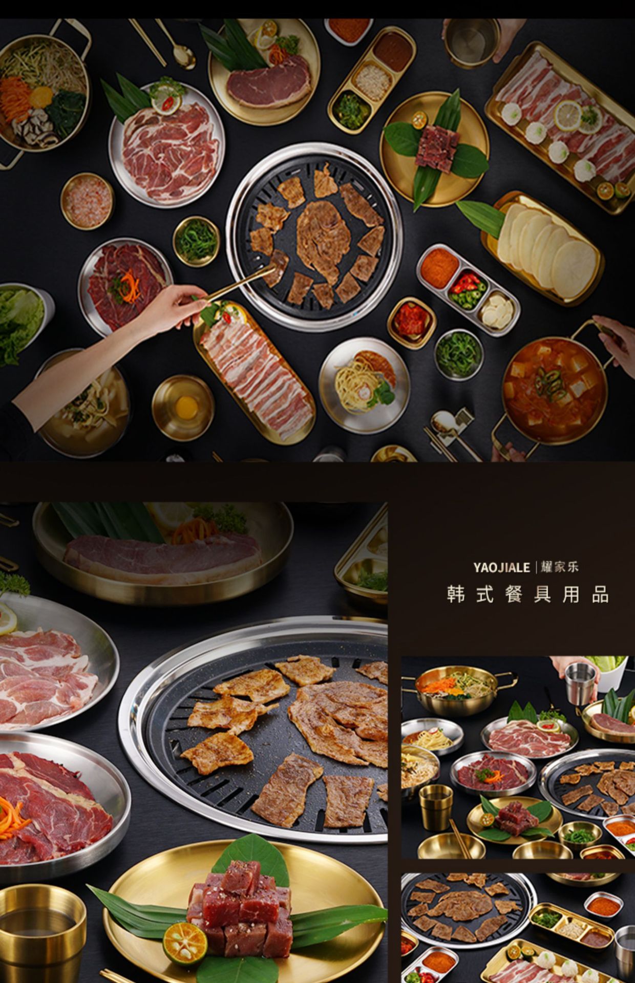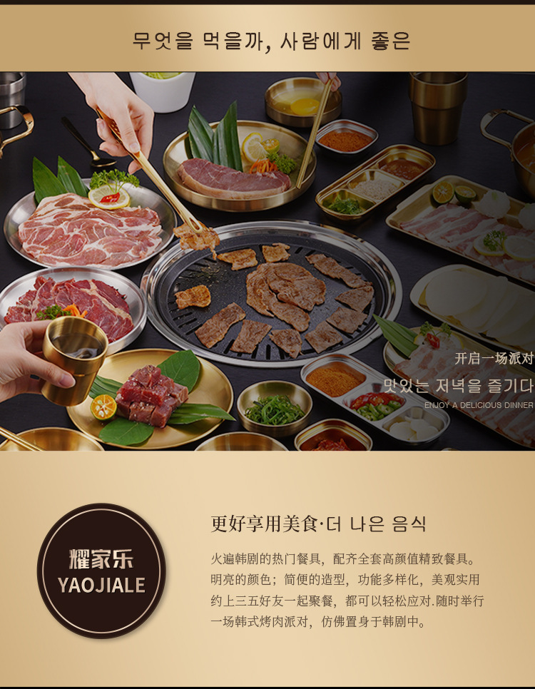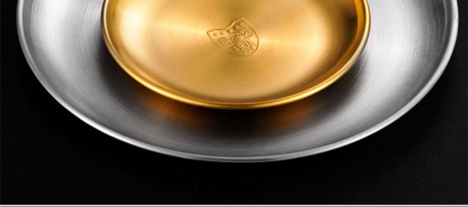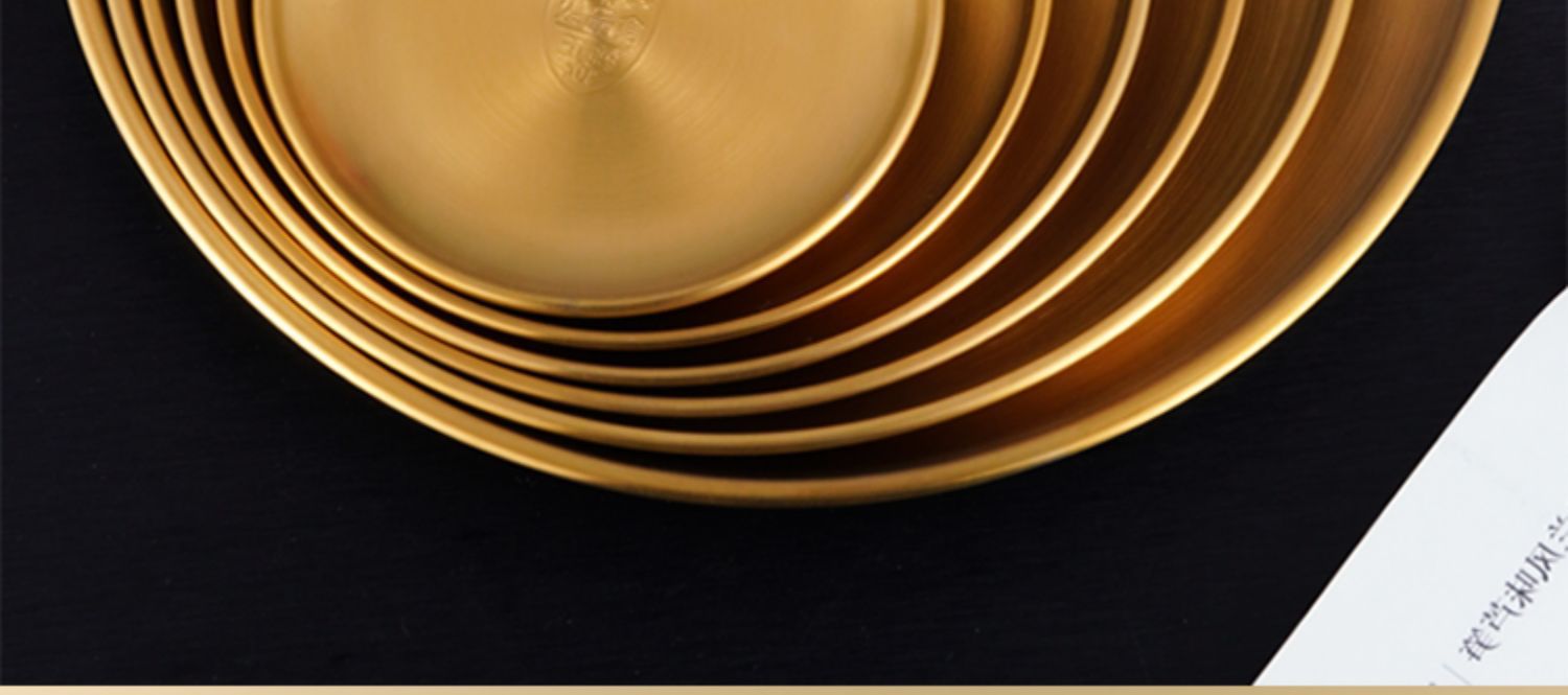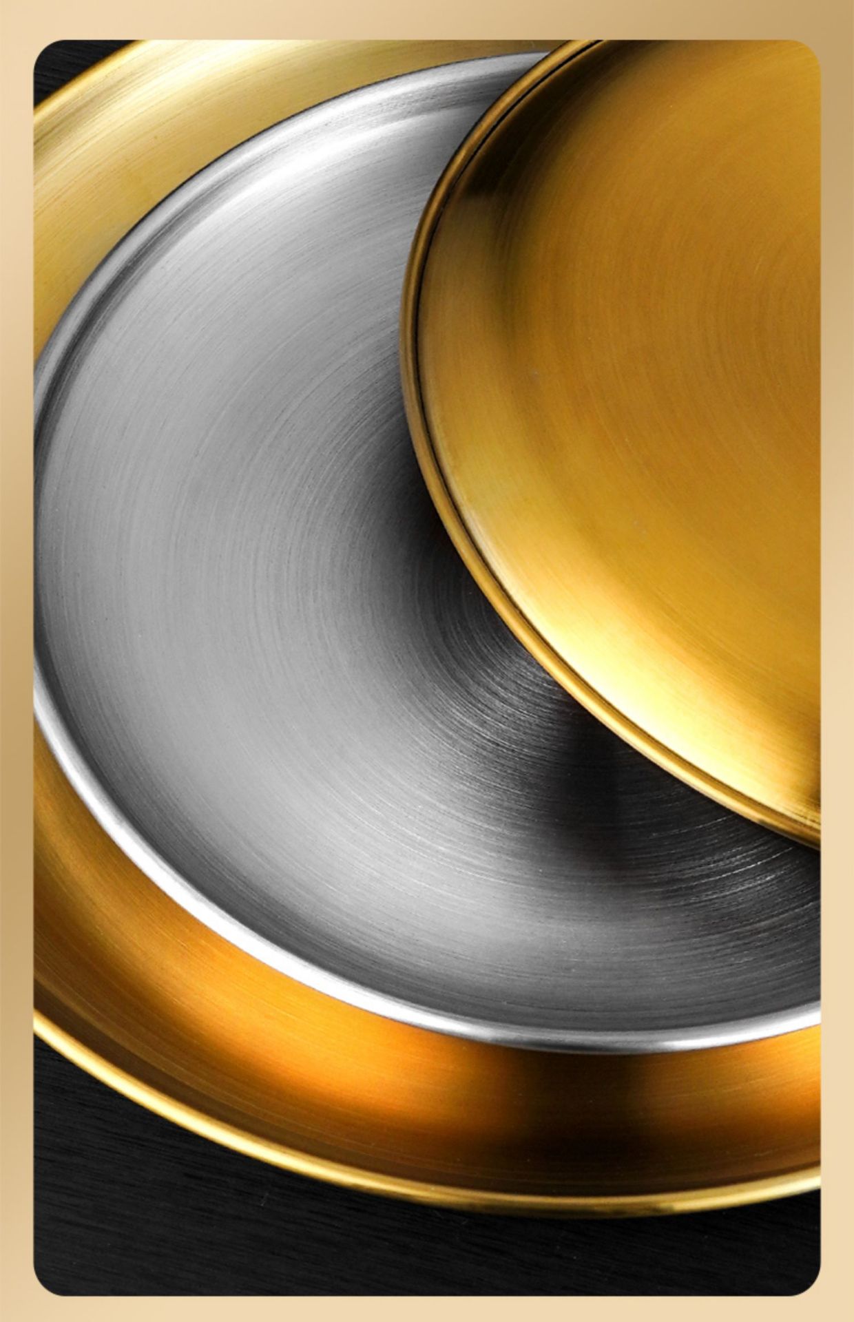 304 스테인리스 접시 한식 바베큐 접시 가정용 금색 원형 접시 트레이 스테이크 서양식 접시 뼈 접시 얕은 접시