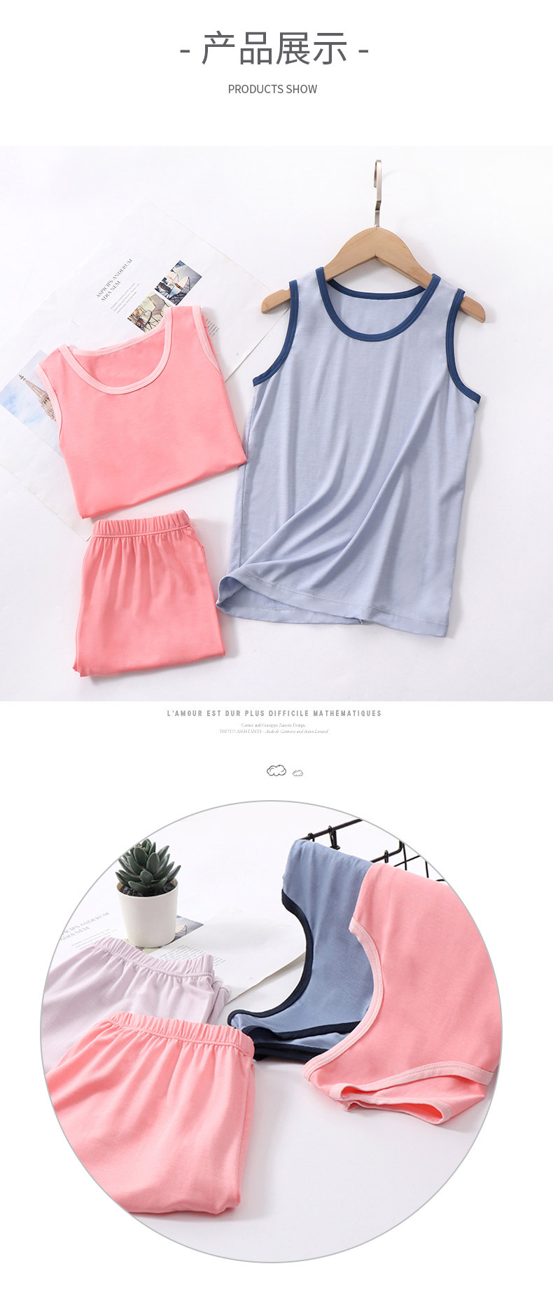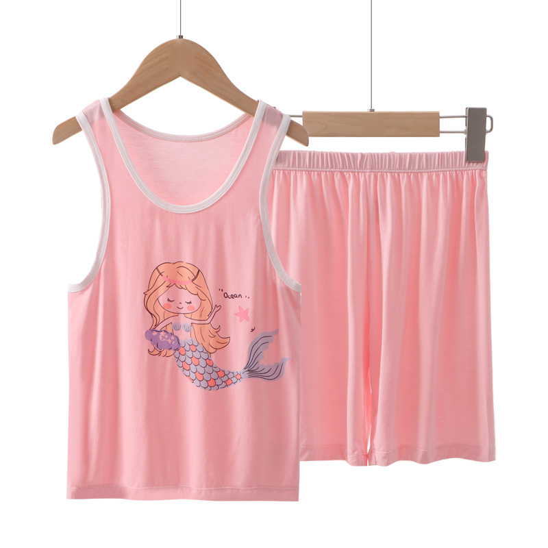 Yokos 새로운 어린이 조끼 세트 여름 얇은 통기성 투피스 조끼 소년과 소녀를위한 반바지스토어 가기
