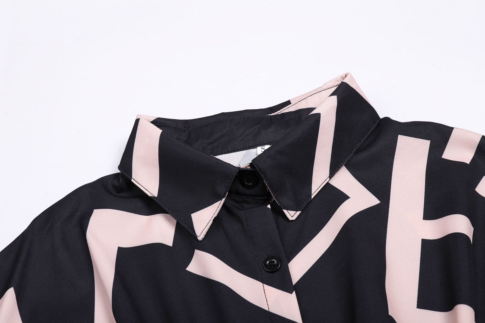 크로스 보더 유럽과 미국 봄 새로운 여성 패션 셔츠 우아한 통근 인쇄 허리 주름 긴팔 셔츠 여성용스토어 가기