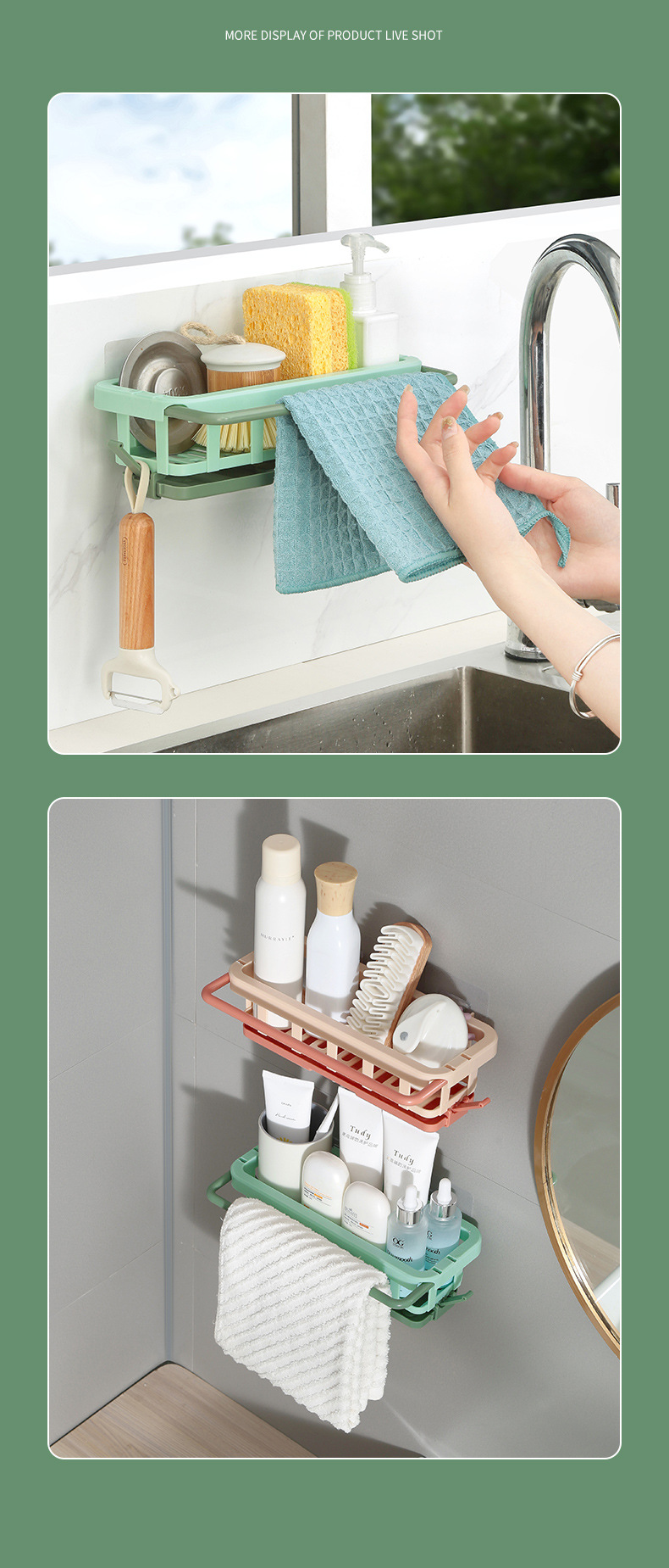 주방 랙 스토리지 랙 배수 펀치 프리 스토리지 랙 벽걸이 형 조미료 선반 가정용 배수 바구니 싱크