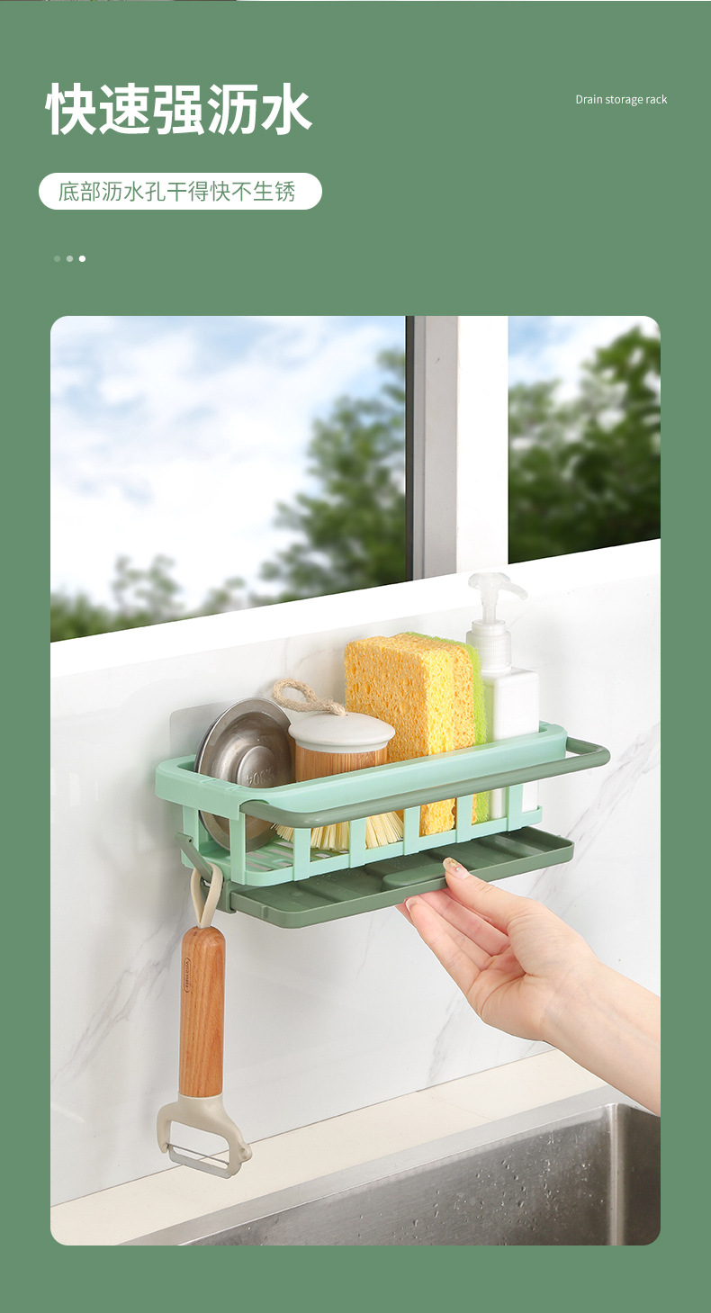 주방 랙 스토리지 랙 배수 펀치 프리 스토리지 랙 벽걸이 형 조미료 선반 가정용 배수 바구니 싱크스토어 가기