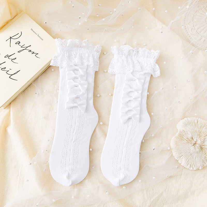 여아 중간 길이 스타킹 여름 얇은 레이스 메쉬 통기성 레이스 나비 커프 스타킹 한국식 아기 스택 스타킹