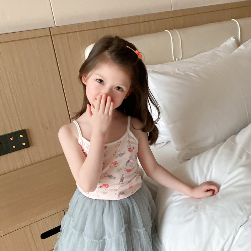 Y夏季新款纯棉女童吊带女宝宝卡通打底背心 中大童护肚内衣家居服 RMB:7.99