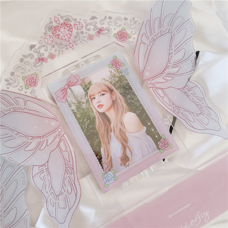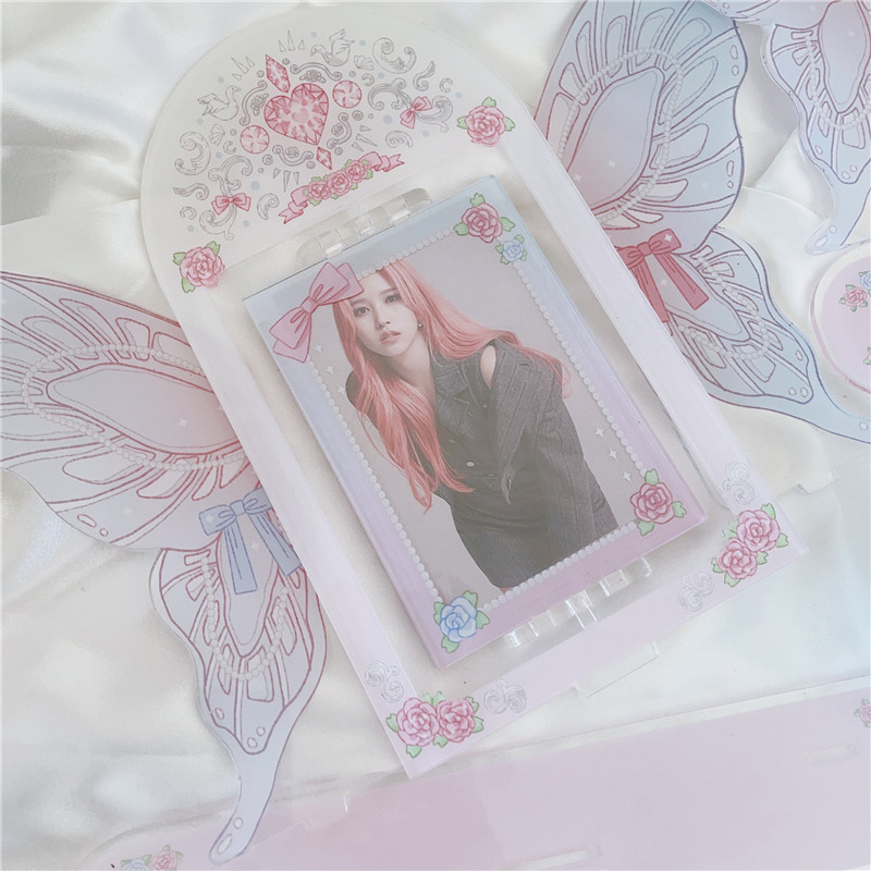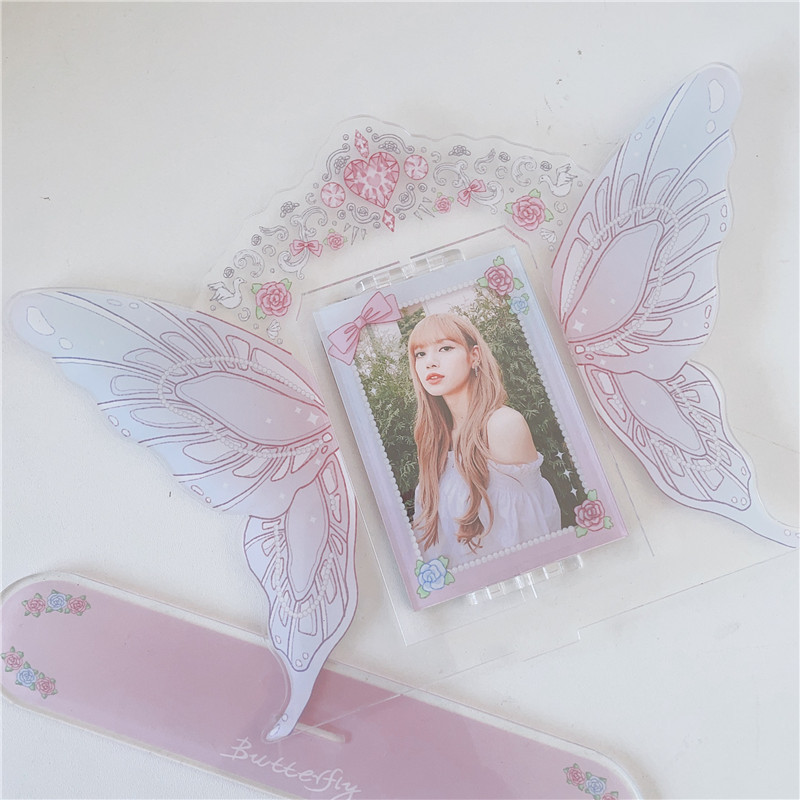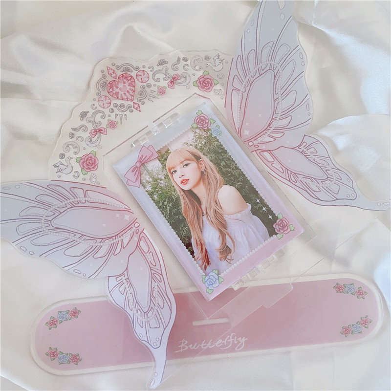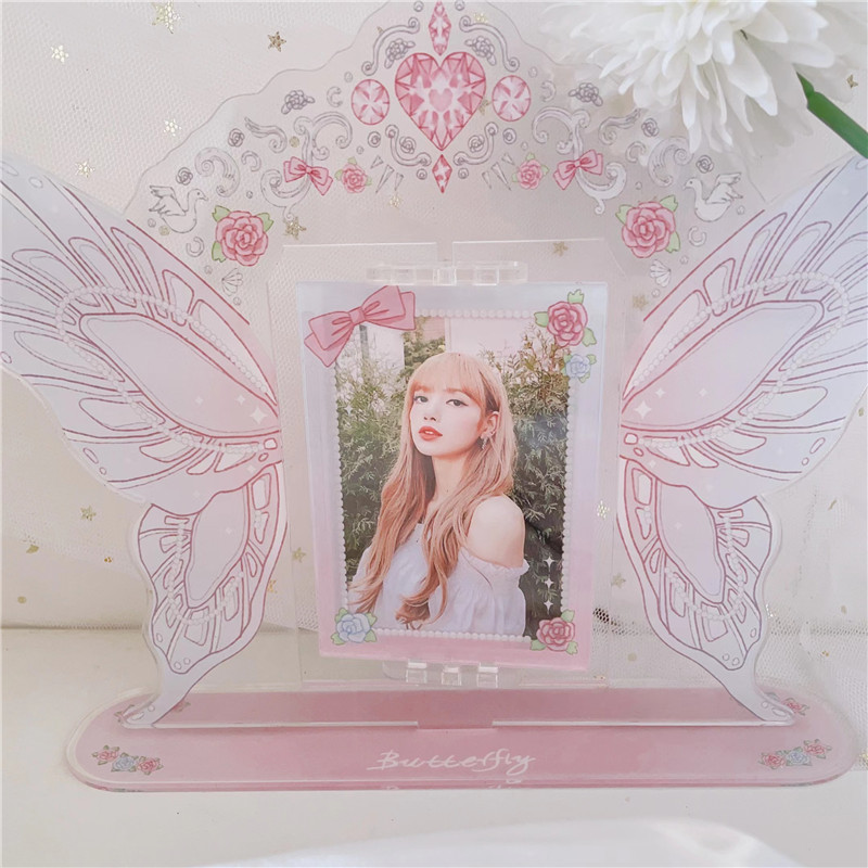 한국 스타일 스타일 아크릴 나비 효과 회전 브랜드 스타 사진 작은 카드 보관 데스크탑 장식 장식품