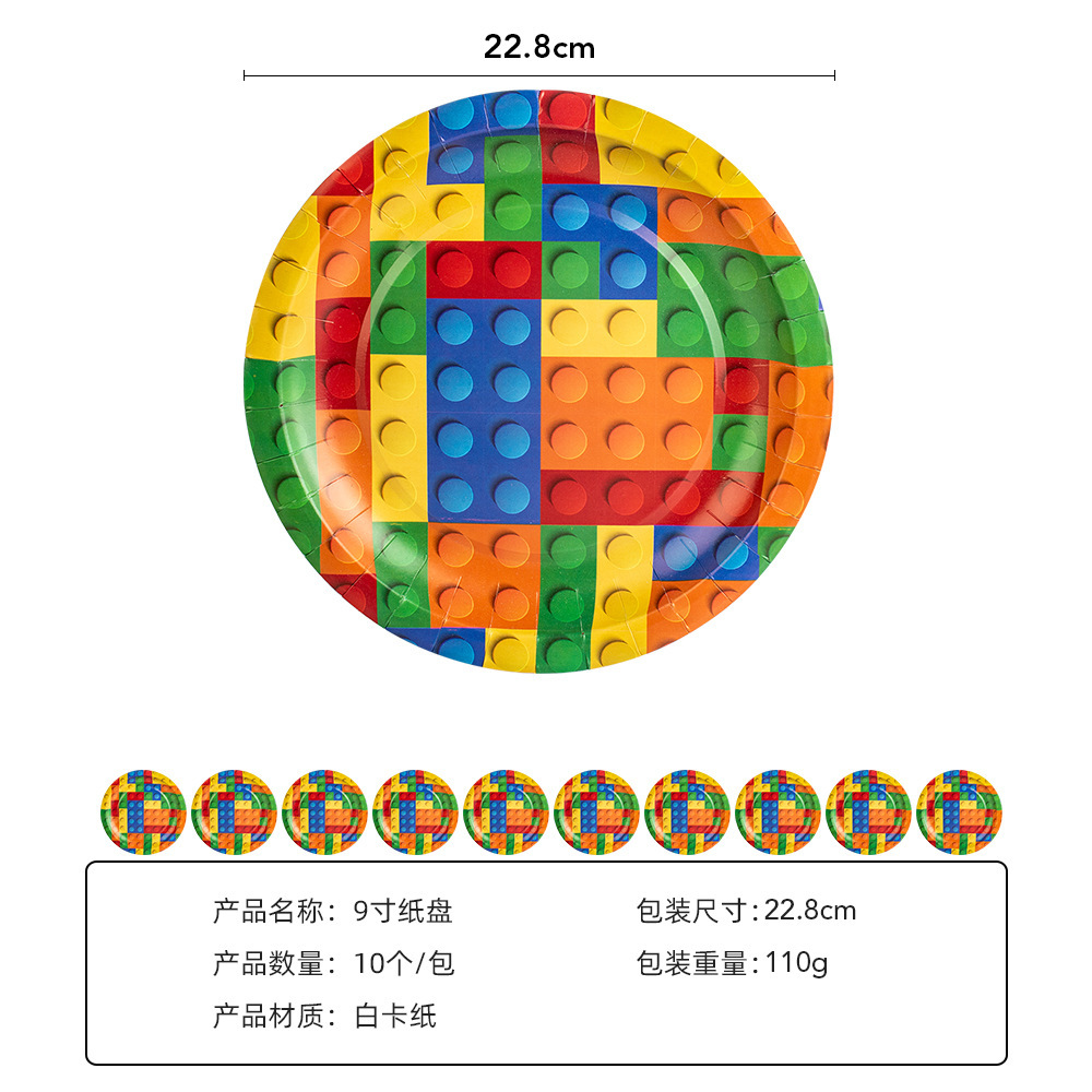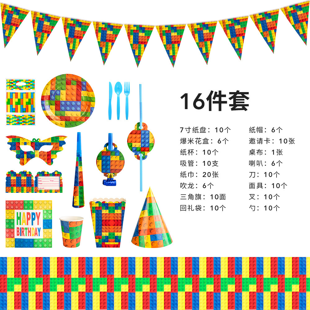 빌딩 블록 생일 파티 세트 어린이 게임 블록 종이컵 생일 파티 용품 일회용 생일 식기