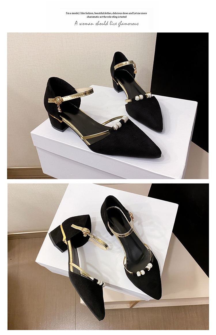 두꺼운 굽 낮은 굽 신발 포인티드 여성용 2023 봄 새로운 하이힐 샌들 중공 라인 석 여성 신발 트렌디스토어 가기