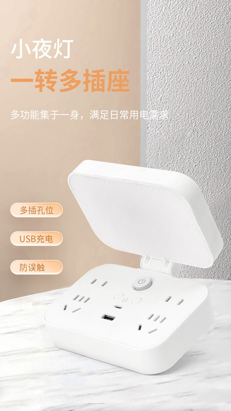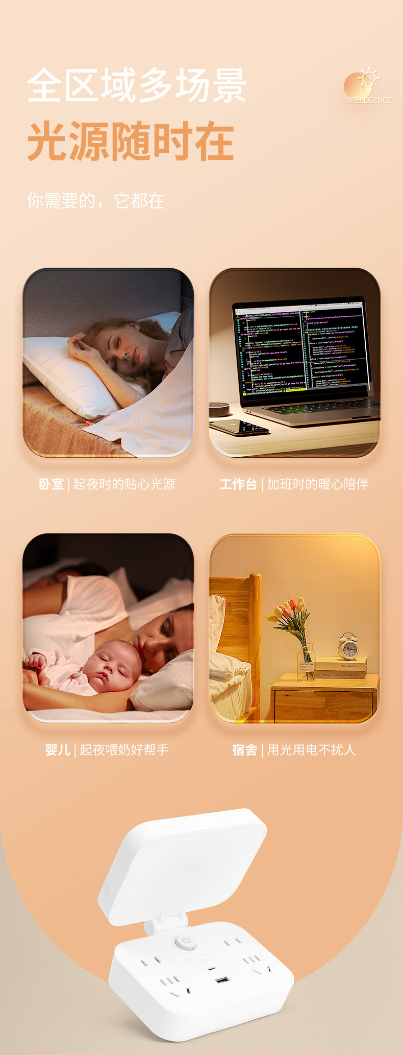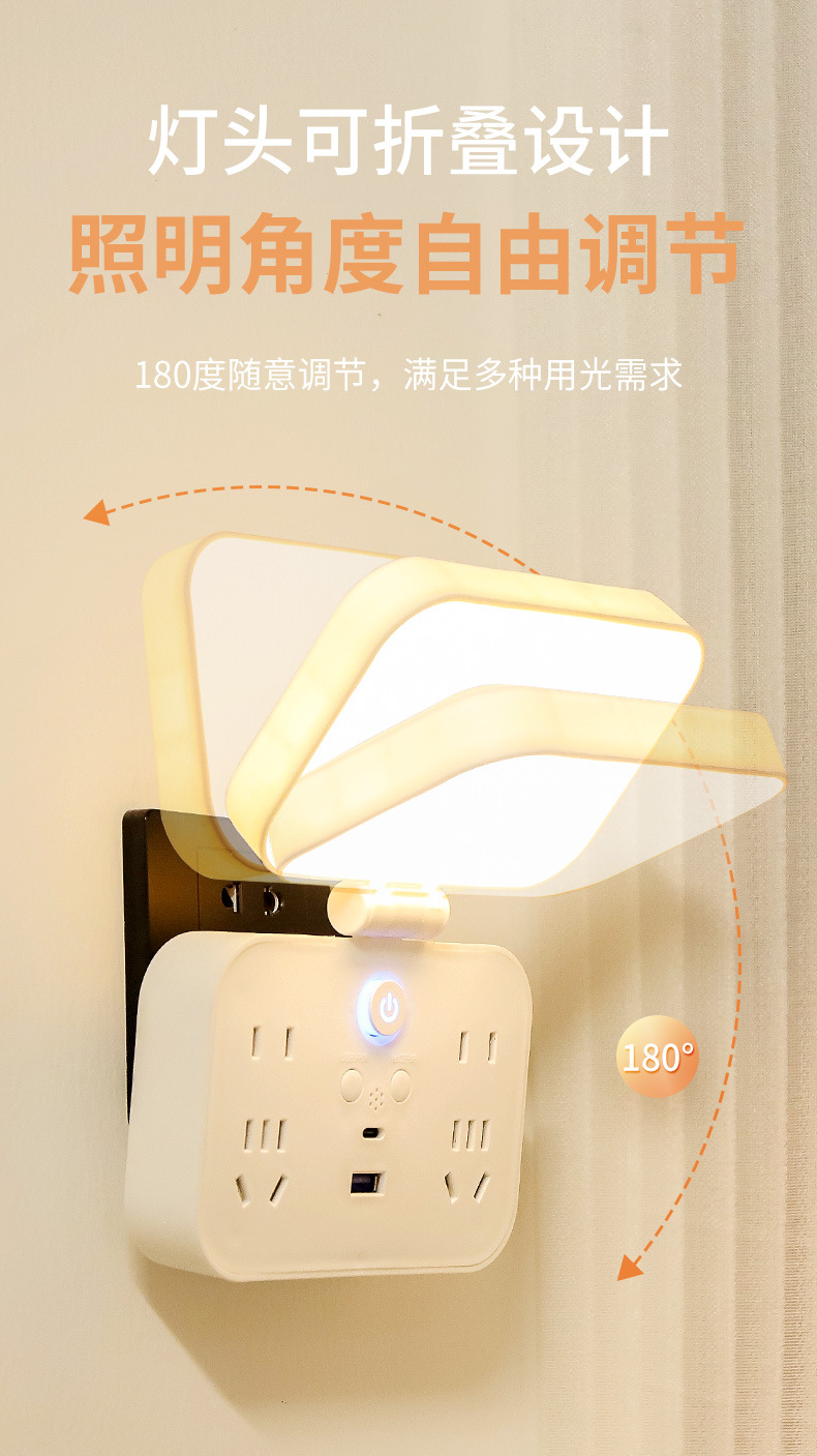음성 제어 침대 옆 벽면 야간 조명, 음성 감지 센서 침실 테이블 램프, 선물용 플러그인 소켓 USB 기하학 조명, 스마트