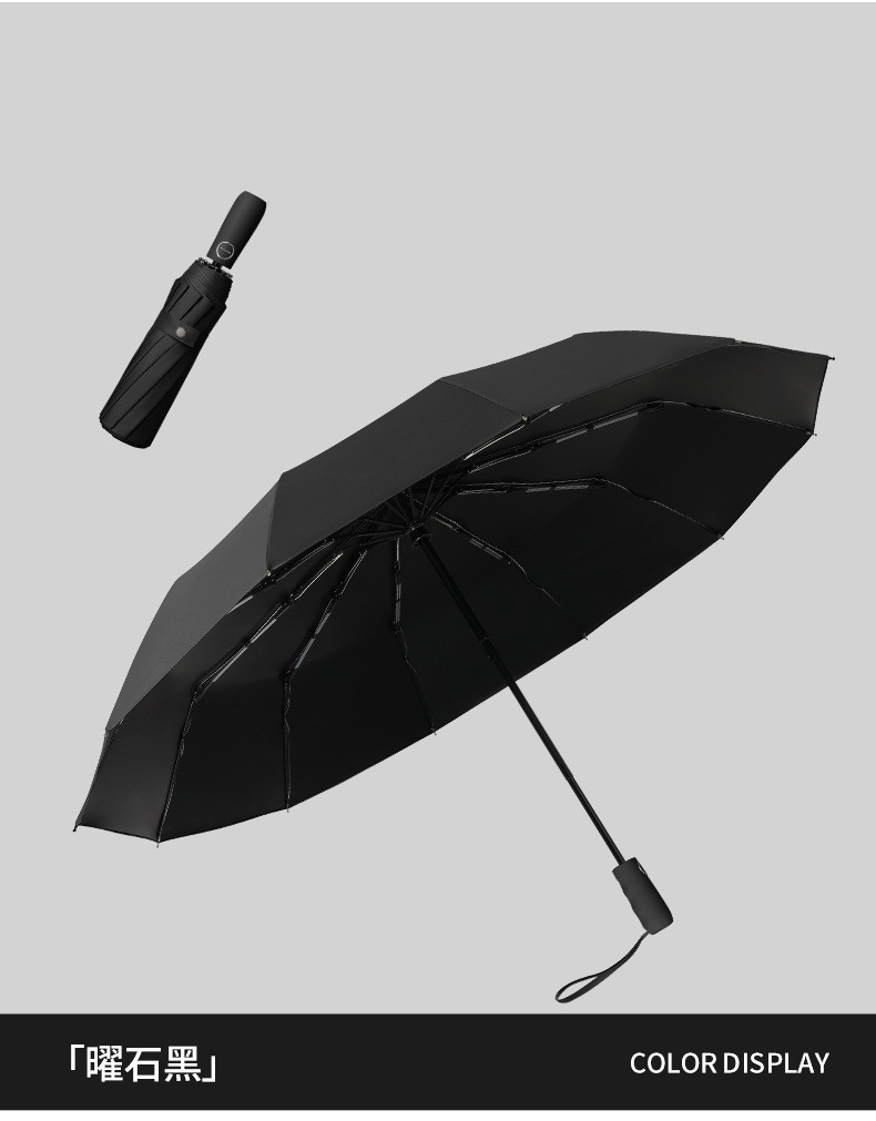• 12 뼈 업그레이드 더블 드래곤 본 자동 우산-흑요석 블랙