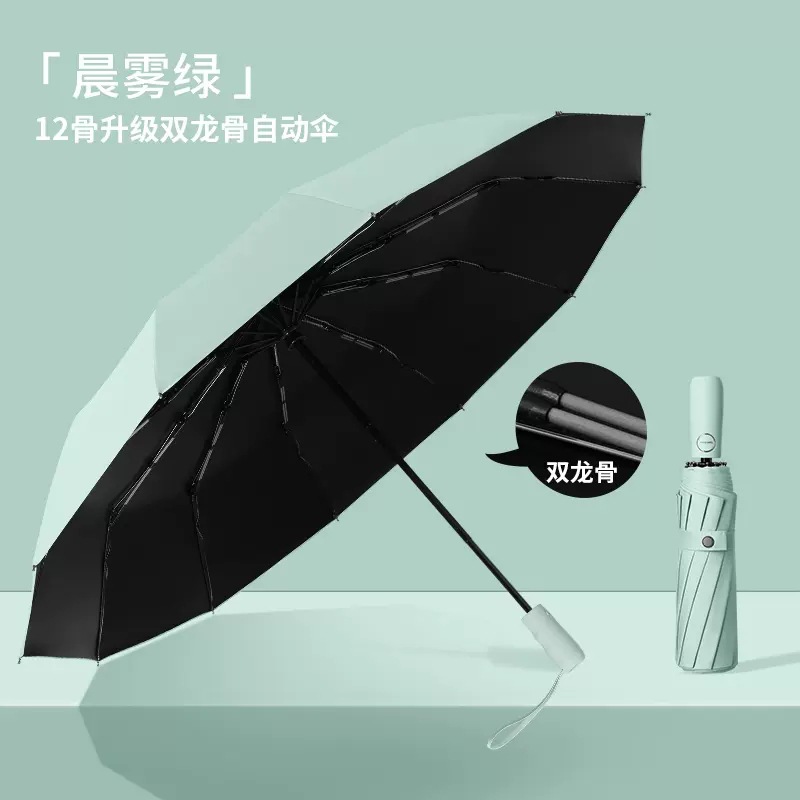 • 12 뼈 업그레이드 더블 드래곤 본 자동 우산-아침 안개 녹색