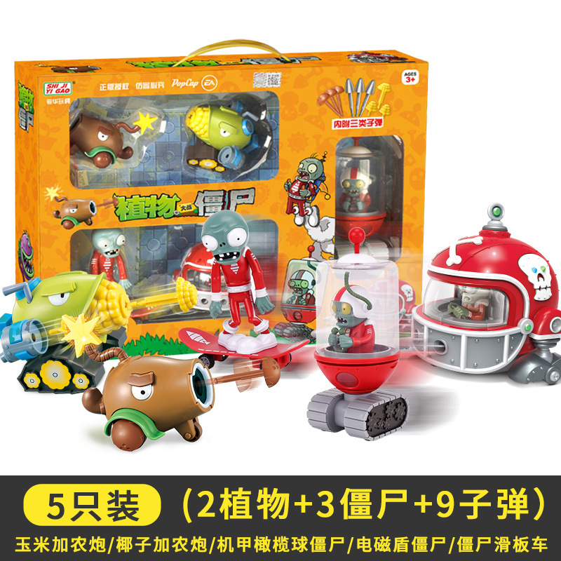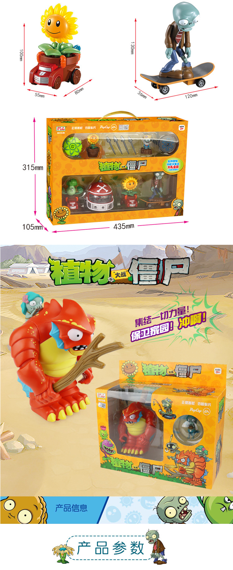 정품 식물 대 좀비 장난감 세트 소년 선물 관성 풀백 자동차 인형 어린이 휴대용 선물 상자