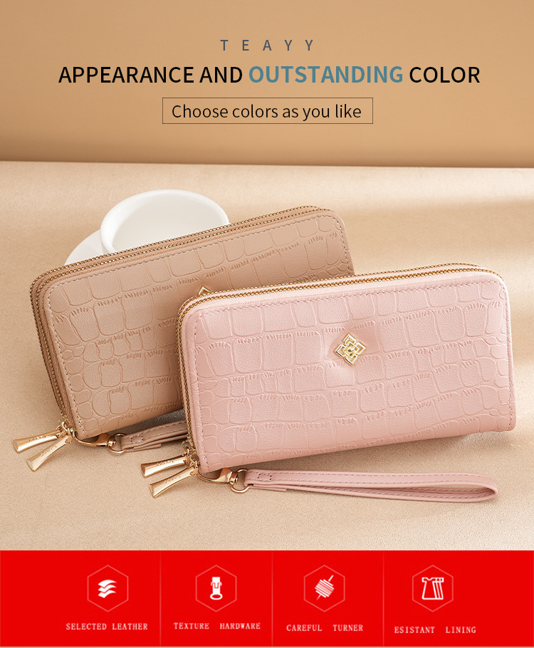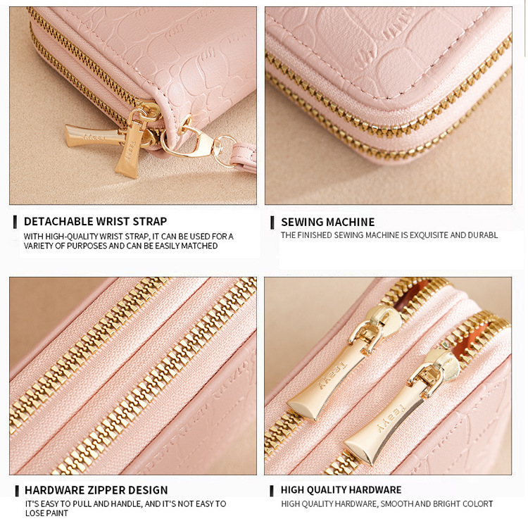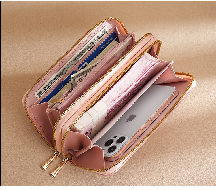2024 신형 지갑 여성용 롱 스타일 이중 지퍼 지갑 대용량 고급 가죽 지갑 핸드백 크로스보더 수납스토어 가기