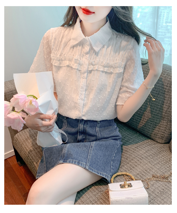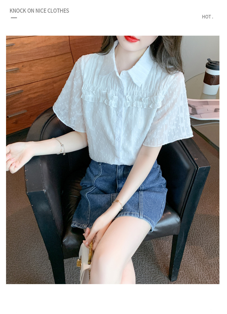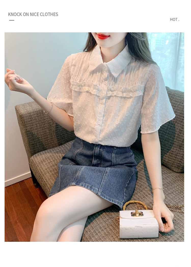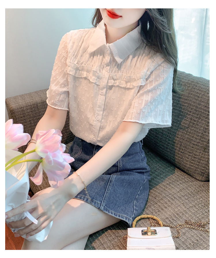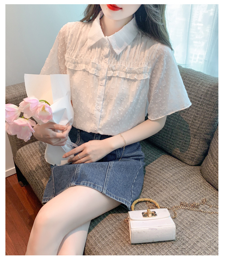 2024 여름 신상 초고급 쉬폰 레이스 반팔 탑 달콤한 디자인의 프렌치 스타일 여성 패션스토어 가기