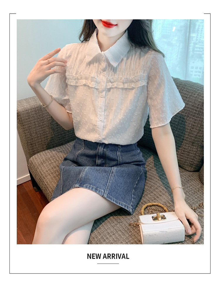 2024 여름 신상 초고급 쉬폰 레이스 반팔 탑 달콤한 디자인의 프렌치 스타일 여성 패션