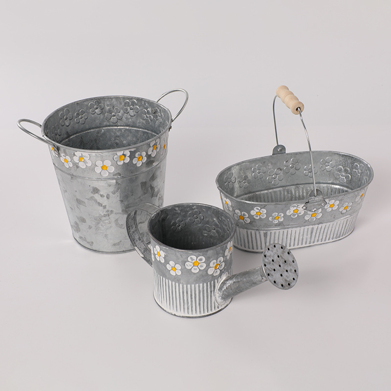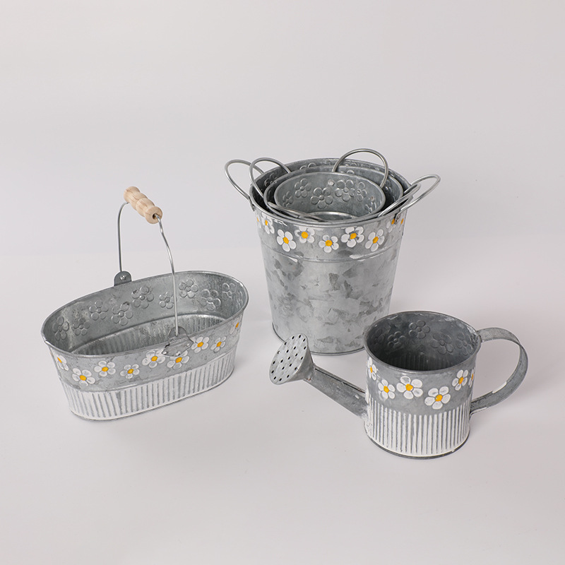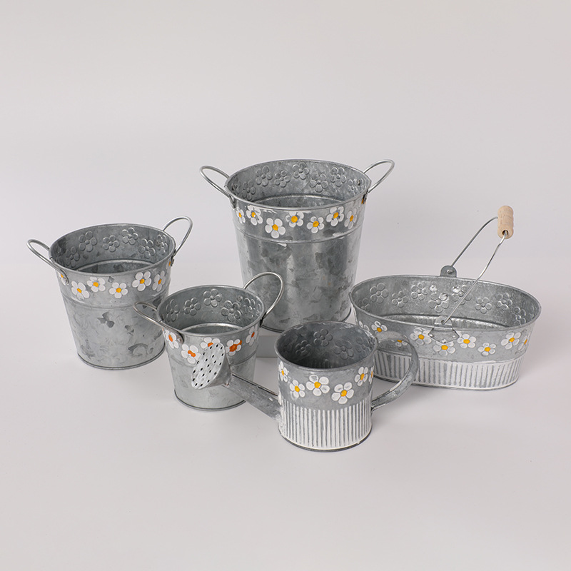 목가적 스타일 단철 화분 다육 식물 철 작은 꽃 양동이 홈 발코니 장식 장식품 큰 철 꽃 양동이