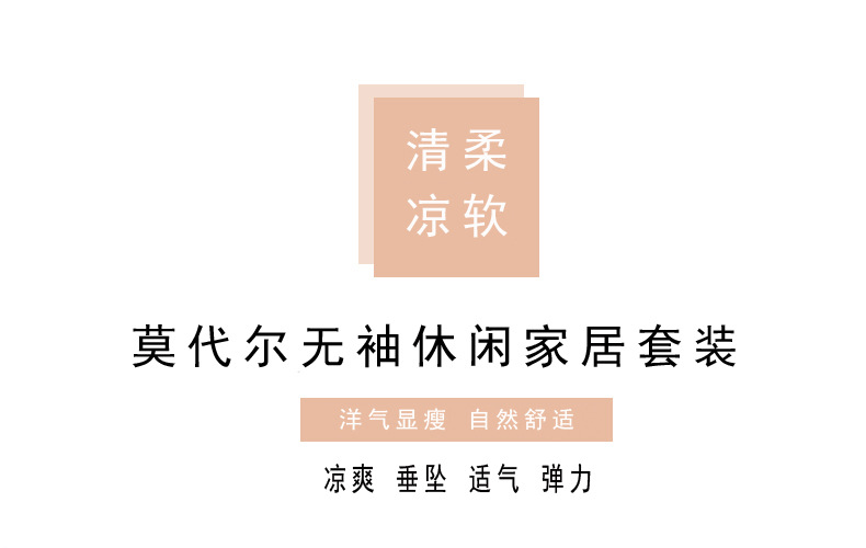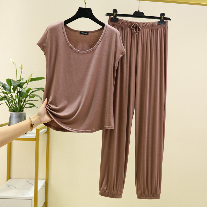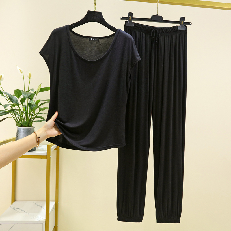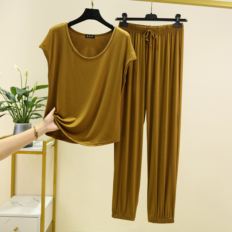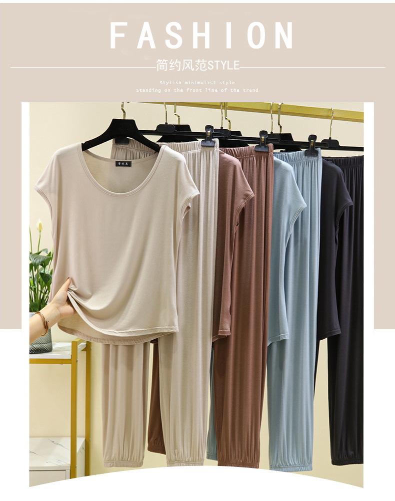 여름 잠옷 세트 여자의 여름 모달 얇은 민소매 티셔츠 바지 간단한 캐주얼 아웃웨어 가정 의류스토어 가기