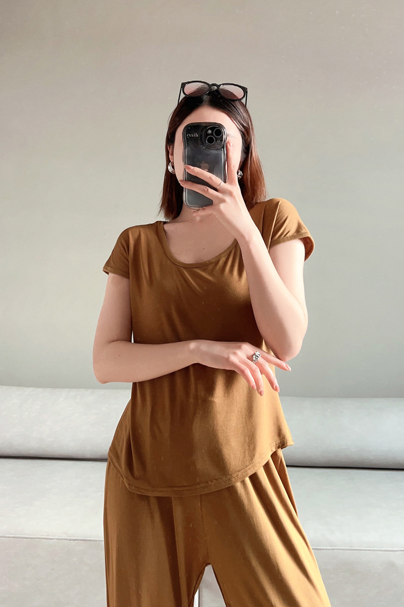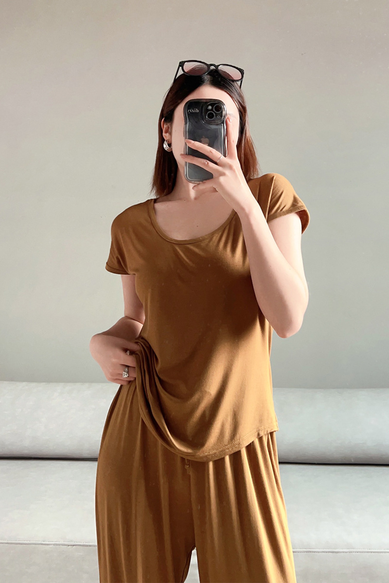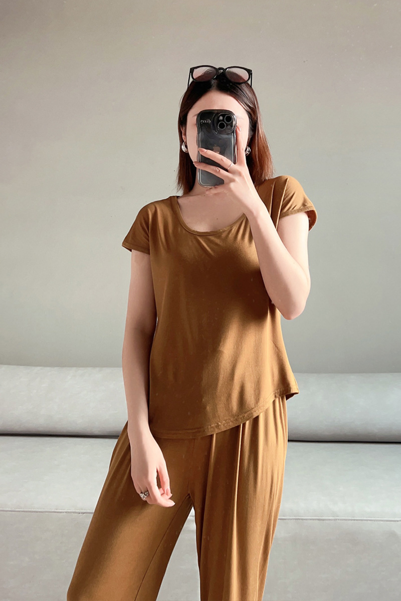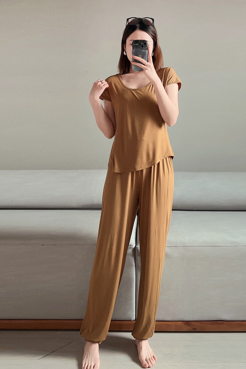 여름 잠옷 세트 여자의 여름 모달 얇은 민소매 티셔츠 바지 간단한 캐주얼 아웃웨어 가정 의류스토어 가기
