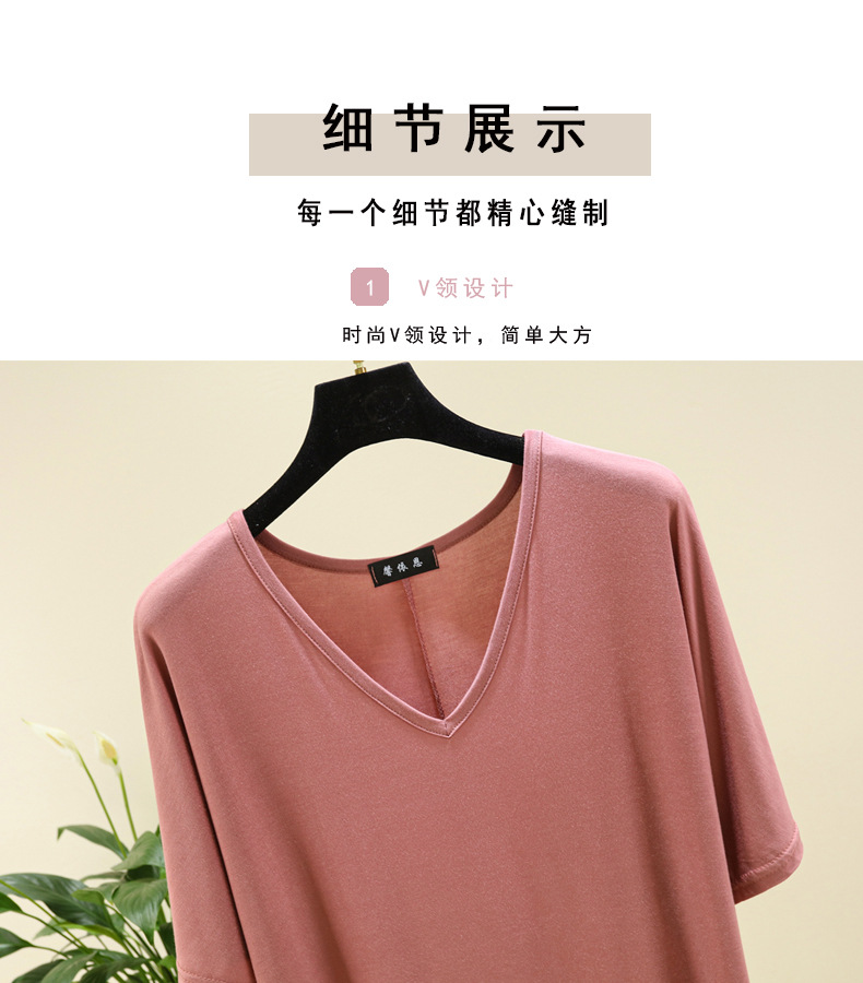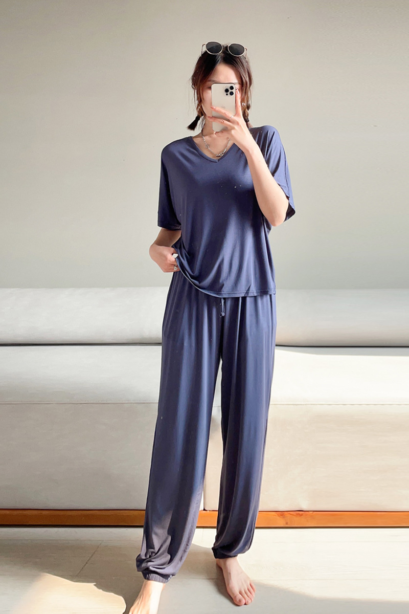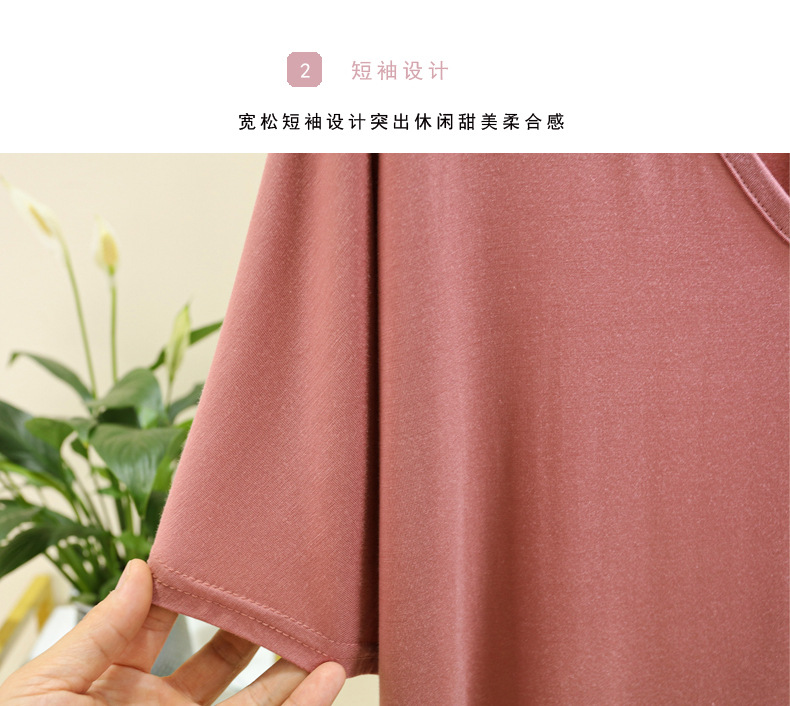 모달 얇은 잠옷 여자의 봄과 여름 2023 새로운 V-넥 반팔 바지 느슨한 가정 옷 세트 겉옷스토어 가기