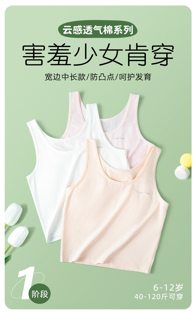 속옷 발달 학생 조끼 여아 안티 범프 소녀의 올인원 면 패드 브래지어 메쉬 통기성 튜브 탑