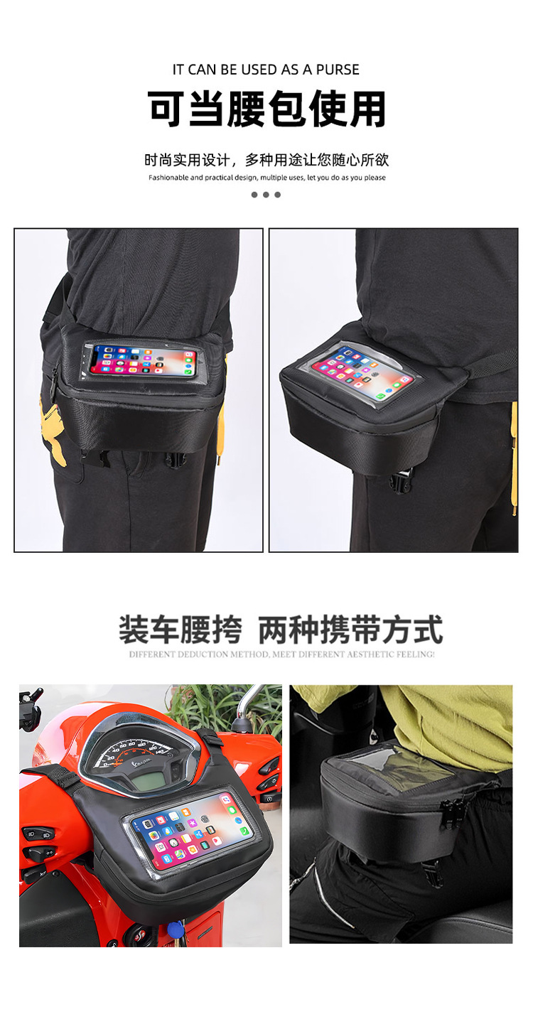 전기차 전면 가방, 오토바이 킥보드 방수 터치스크린 내비게이션 수납 가방, 앞쪽 가방, 크로스백, 허리 가방