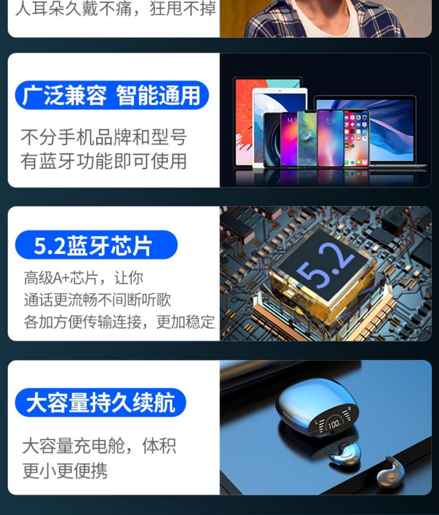 하이 엔드 수면 블루투스 헤드셋 뼈 전도 귀에 있지 않은 실제 무선 소음 감소 초박형 긴 착용 통증이없는 긴 내구성 남성스토어 가기
