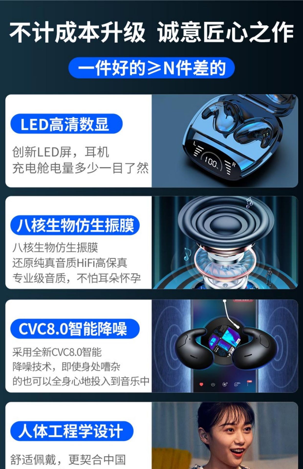 하이 엔드 수면 블루투스 헤드셋 뼈 전도 귀에 있지 않은 실제 무선 소음 감소 초박형 긴 착용 통증이없는 긴 내구성 남성