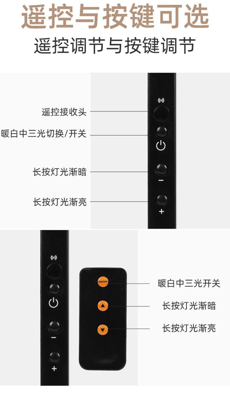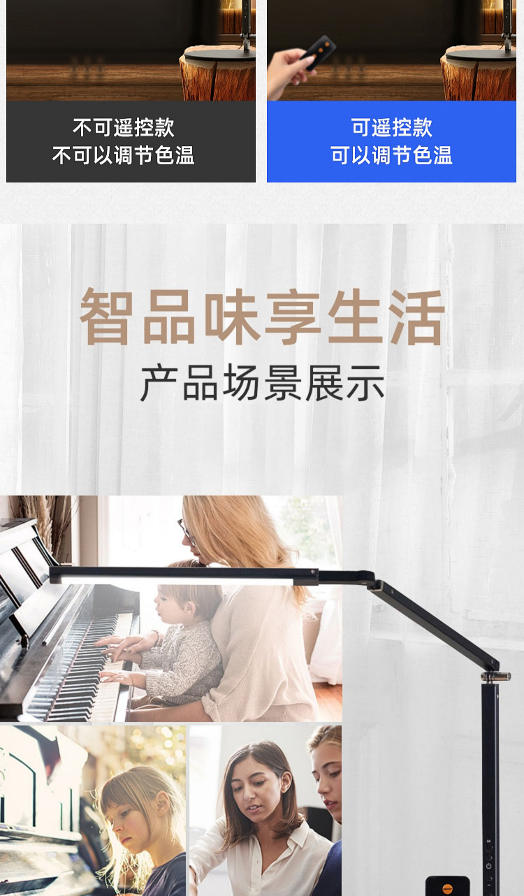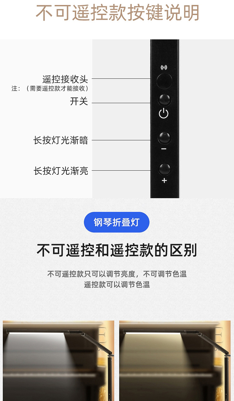 • [원격 제어 블랙] 부드러운 빛 따뜻한 빛 차가운 빛 색 온도 조절 가능] 눈 보호 피아노 램프