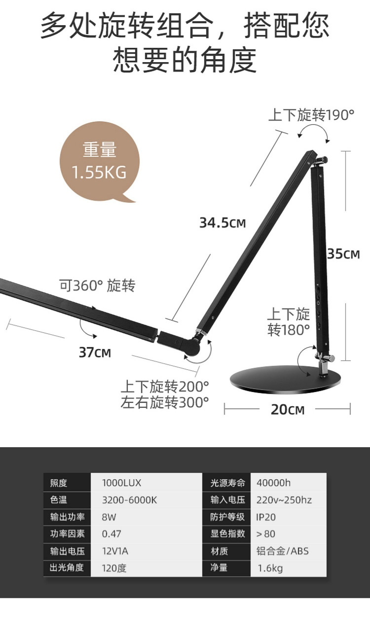 • [정사이즈 모델 실버] 차가운 빛 밝기 조절 가능] 눈 보호 피아노 램프