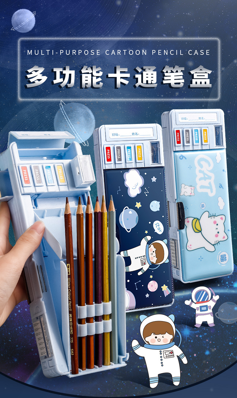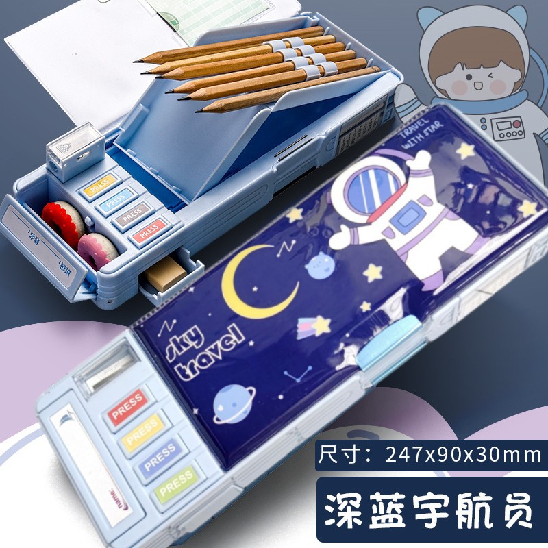 양면 문구 케이스 소년 다기능 변형 우주 비행사 필통 대용량 키기구 어두운 캐빈 펜 케이스스토어 가기
