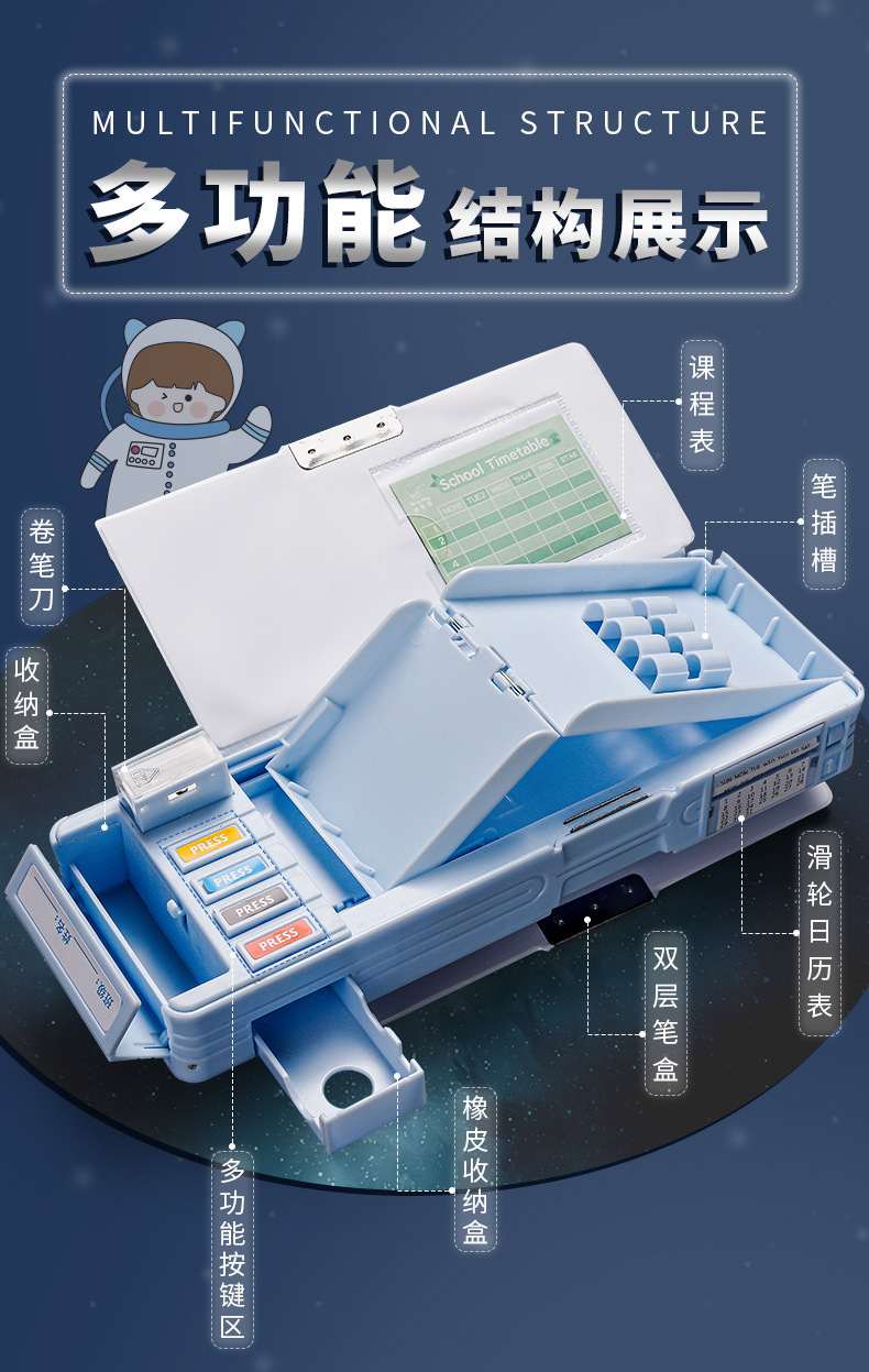 양면 문구 케이스 소년 다기능 변형 우주 비행사 필통 대용량 키기구 어두운 캐빈 펜 케이스