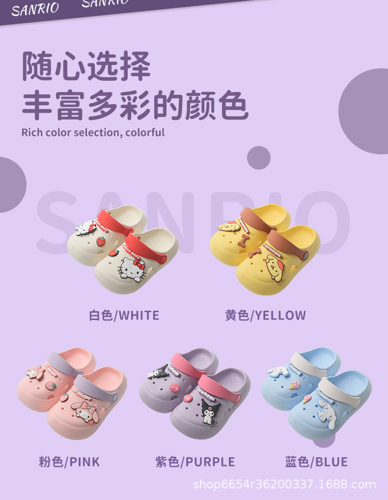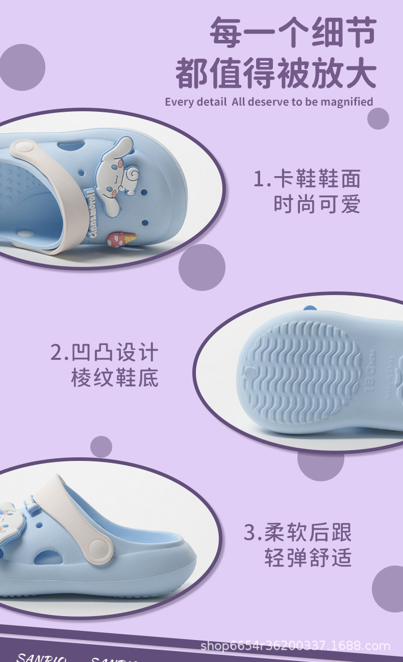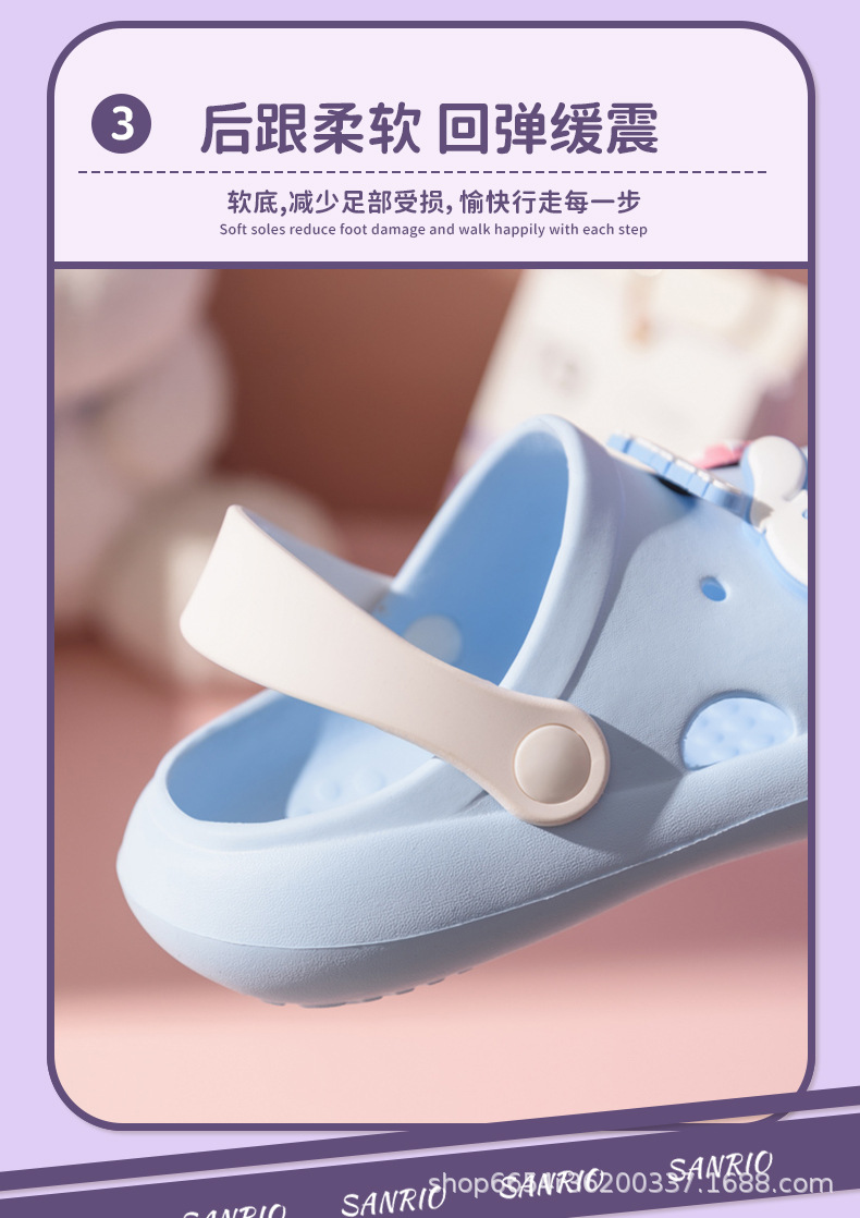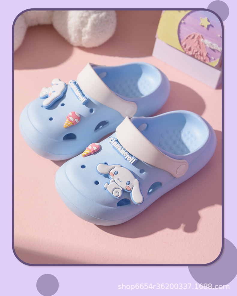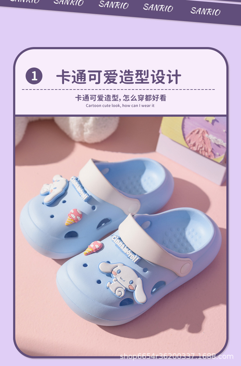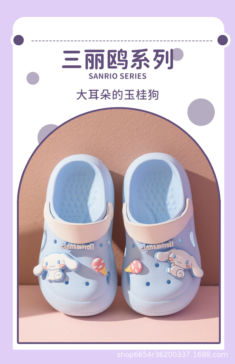 새로운 산리오 슬리퍼 어린이 구멍 신발 여름 복장 가정용 소녀 소프트 솔 어린이 신발 미끄럼 방지 도매스토어 가기