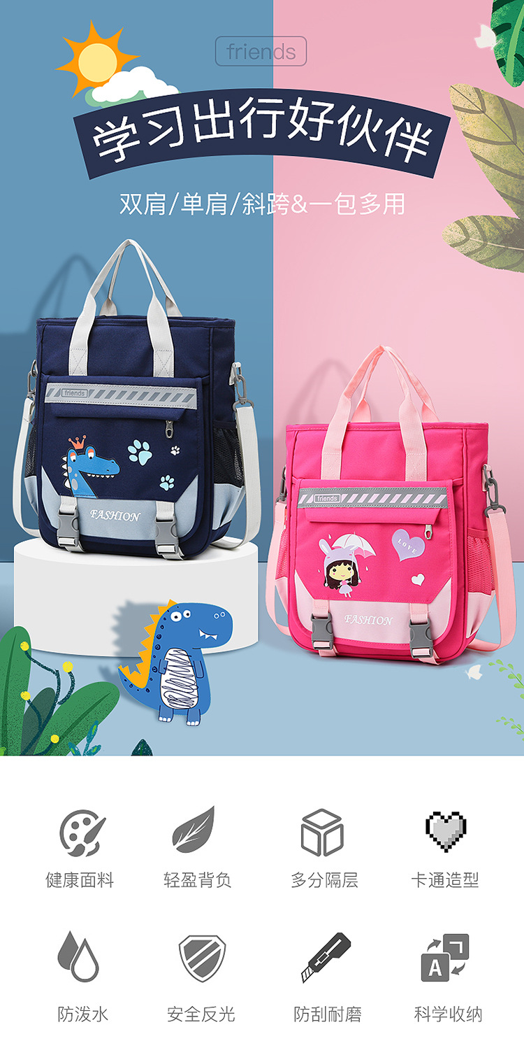 벼락치기 가방 초등학생 3 인용 벼락치기 가방 어린이 귀여운 휴대용 숄더백 크로스 바디 백 소년과 소녀