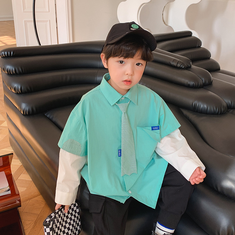 [속보 코드 특별 세일] 봄 아동 셔츠, 스트리트 스타일 스트라이프 긴팔 탑, 한국식 남아 셔츠스토어 가기