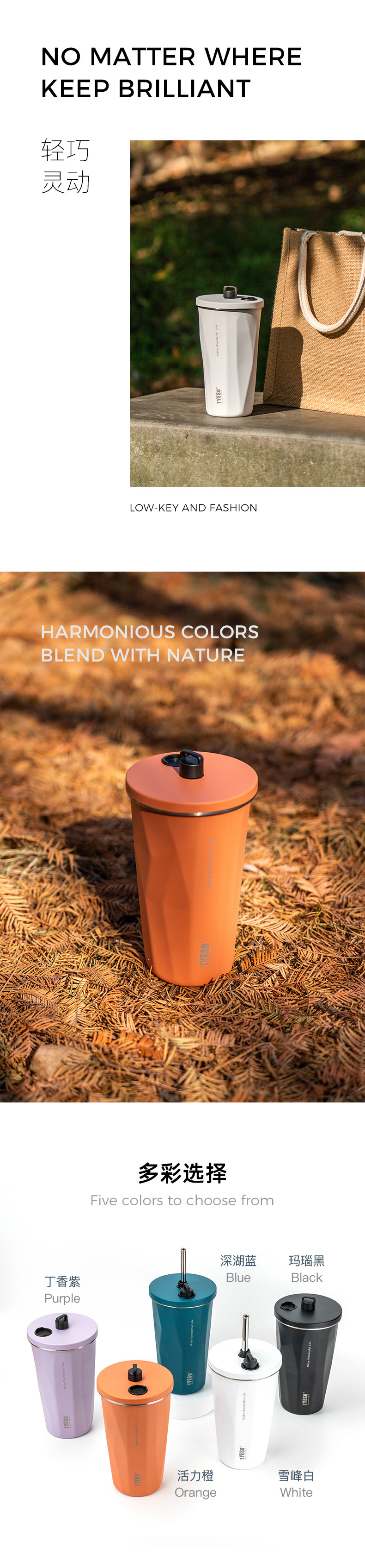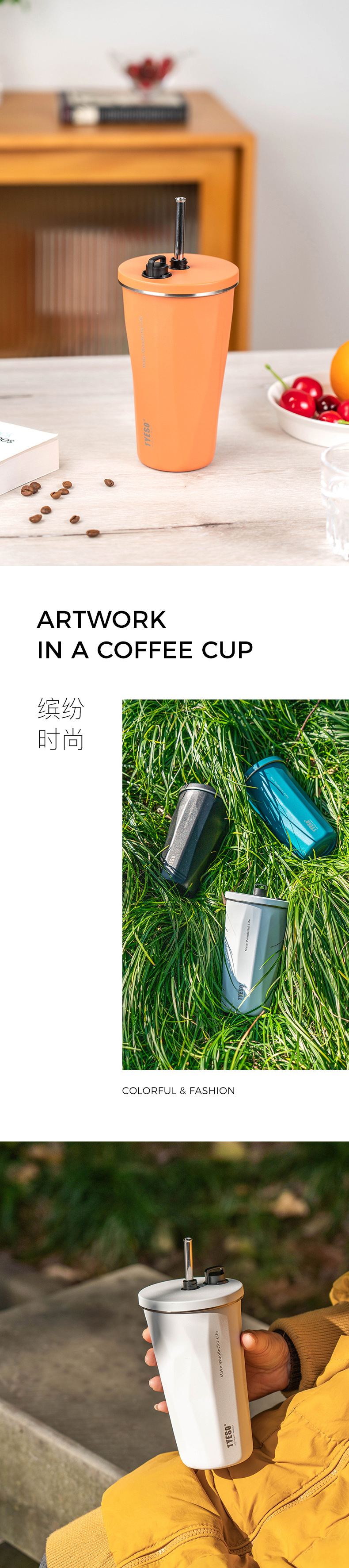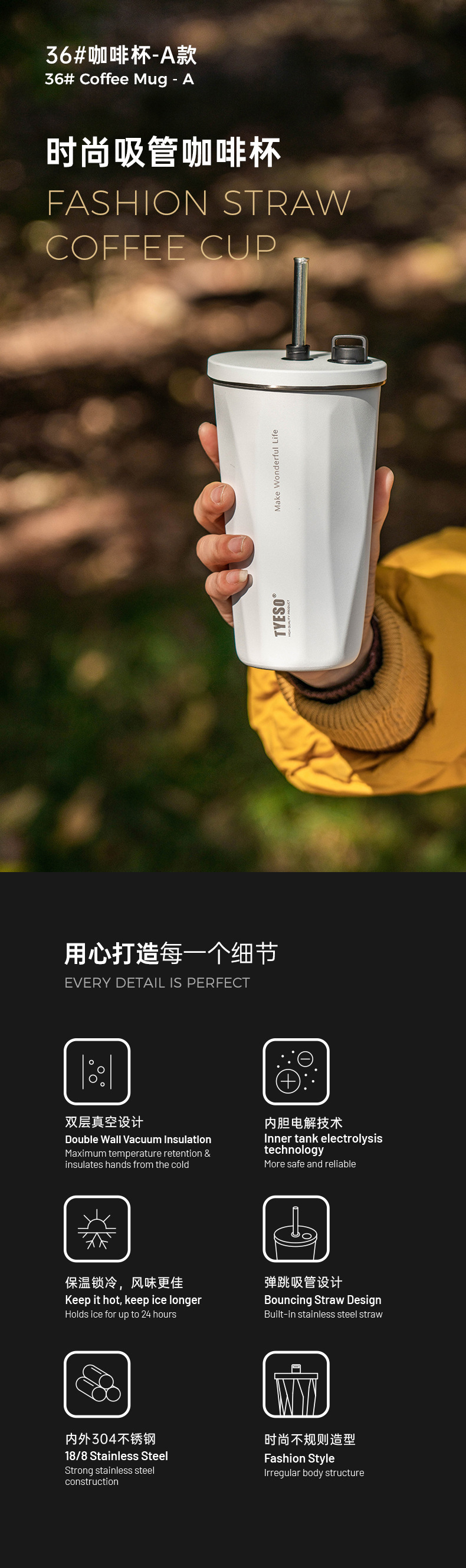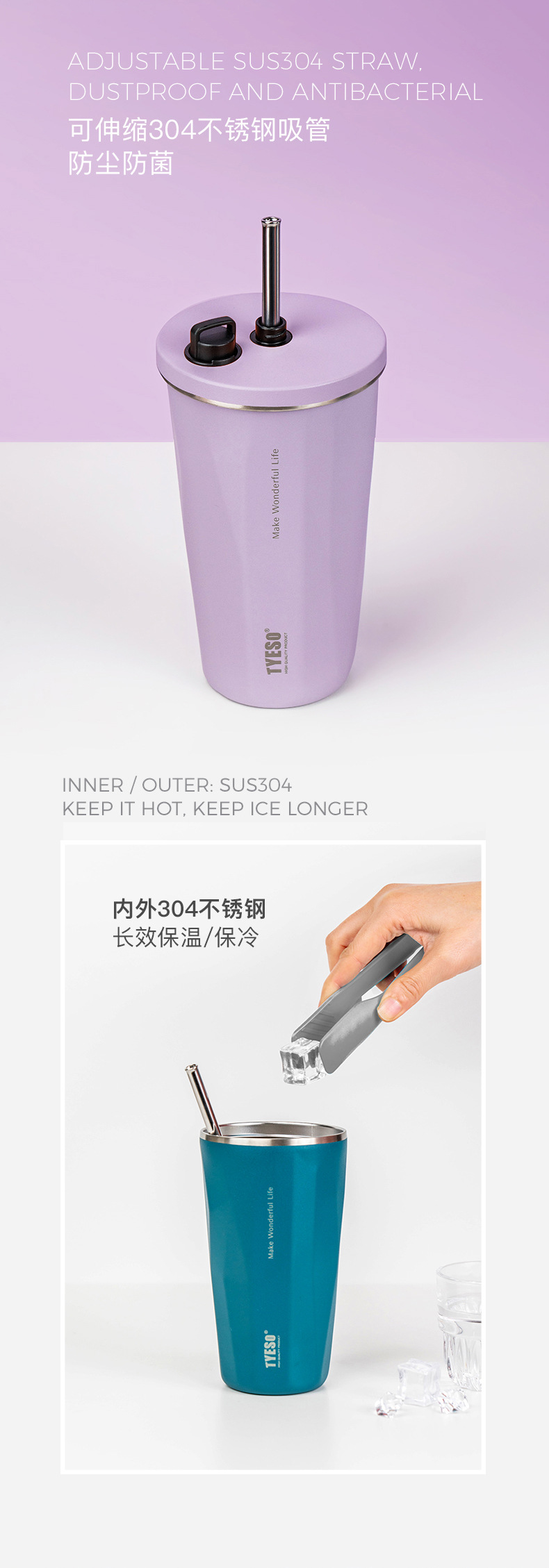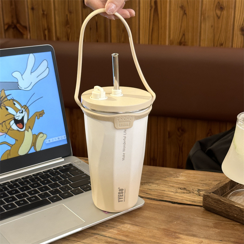 TYESO 타이슈오 뉴 스텐 커피 컵 아이스 불리 단열 차 빨대 컵 진공 대용량 물병