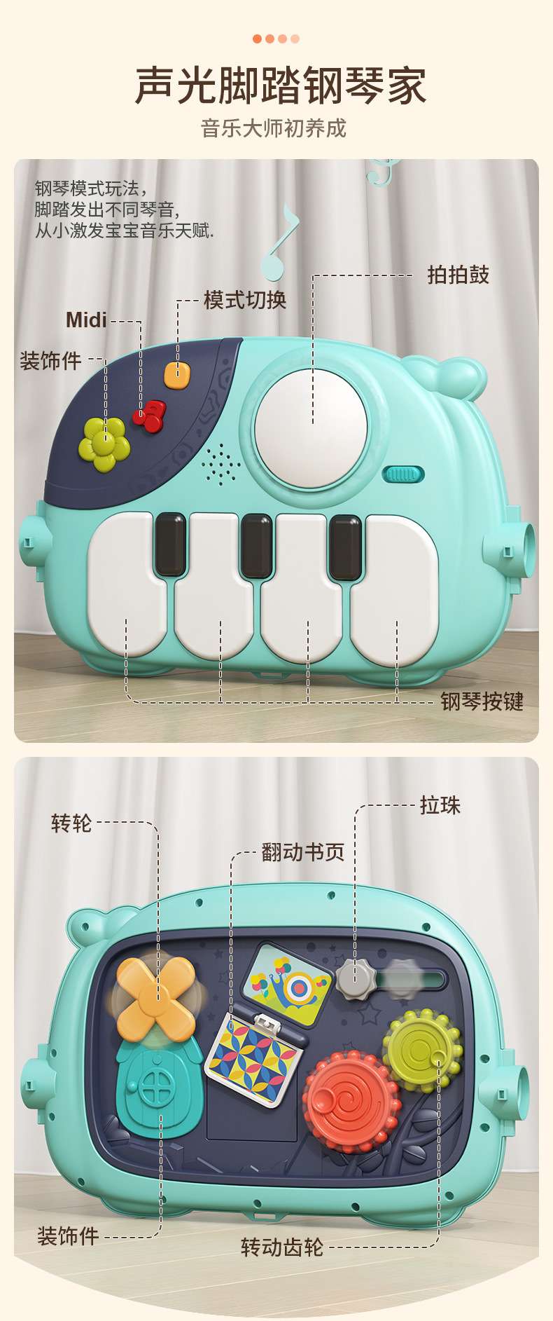 유아 발 피아노 피트니스 랙 아기 발 음악 장난감 2-in -1 크로스 보더 워커 트롤리